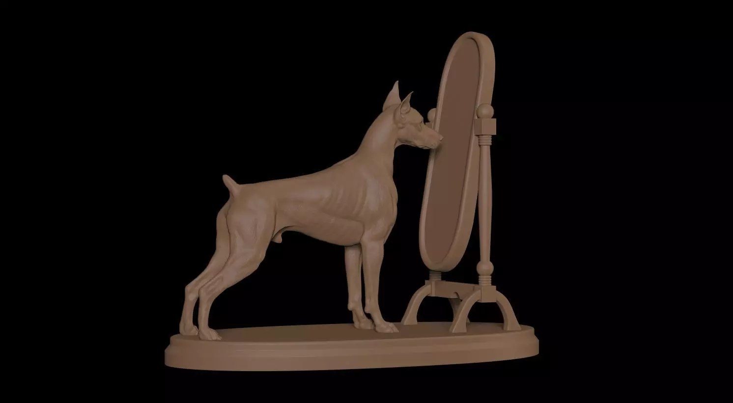 Esta escultura 3D de un Doberman mirándose en el espejo captura la esencia de la vigilancia y la elegancia del perro. La postura del animal, con la cabeza levantada y las orejas alerta, transmite confianza y autoridad. La interacción con el espejo añade un toque de introspección, mostrando un momento de autoevaluación. Diseñada para impresión en 3D, presenta una buena estructura para facilitar la impresión y el acabado. Es una pieza moderna y expresiva, ideal para quienes aprecian la fuerza y la belleza de los Dobermans, y aporta un toque de sofisticación a cualquier colección o espacio dedicado a sus mascotas. Solo el perro mide 250 mm de largo.