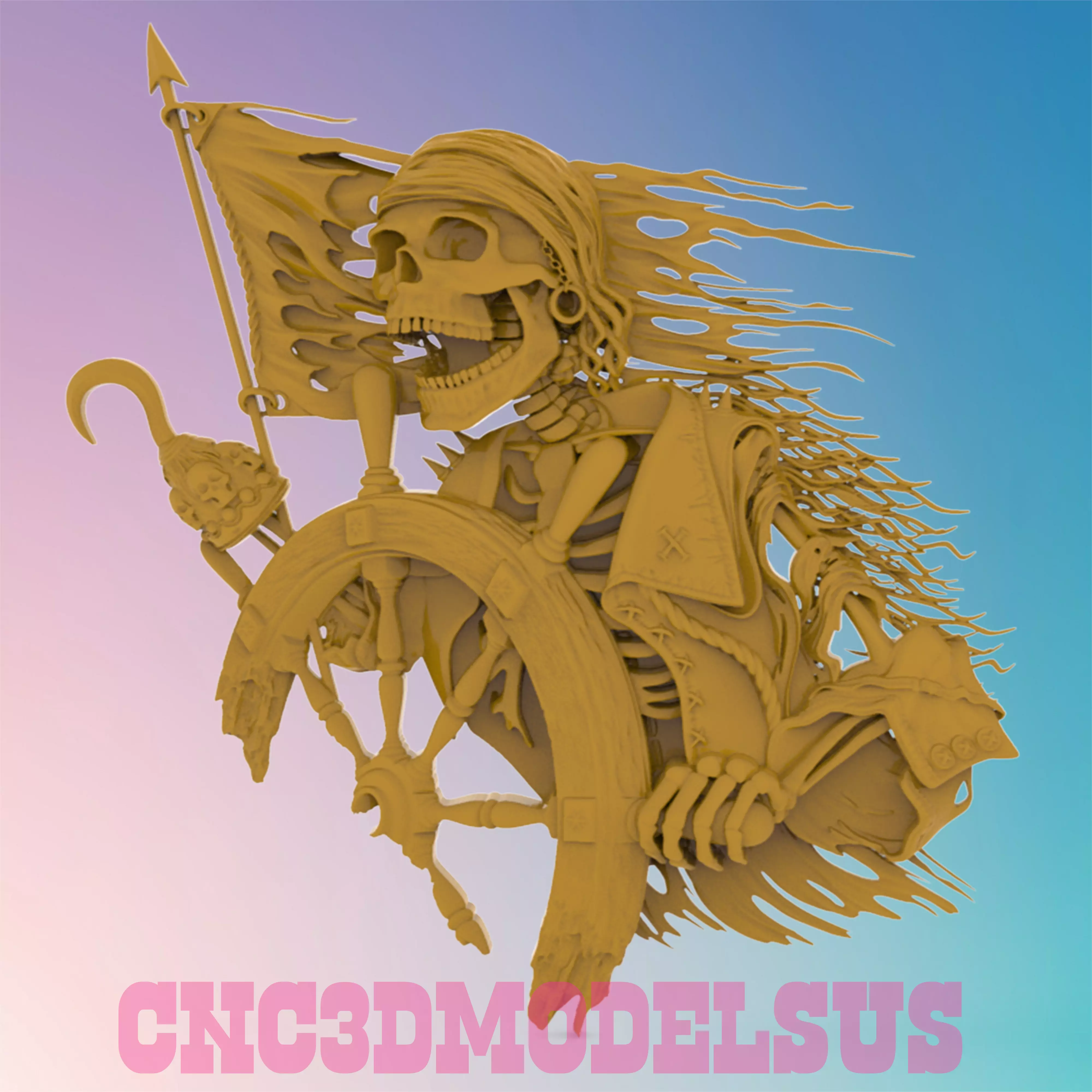 pirate skeleton 3d stl, Wall decor, STL file For CNC Router Engraver, Carving Machine, Relief, Artcam, Aspire