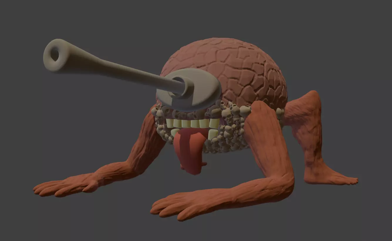 One of the coolest designs from Termina. The platoon is a marriage of multiple bremen soldiers with attached legs and hands and a cannon. It serves the function of a tank for the Kaisers army. We can meet the platoon only in the white bunker when doing the A ending of the game. It approaches the player alongside a Sylvian trooper in of the last rooms before fighting the Kaiser and finding Logic. Personally im a fan of the design but the fight is really strange. Anyway there should be no trouble printing this model if you want to add a base feel free to do so, altough it is not neccesary. As you can see the model is not from the original fear and hunger but from the second game. Alas the old project has been put on halt for now. I dont want to force myself to do the models im not interested in. Hope you enjoy and as always have a good one!