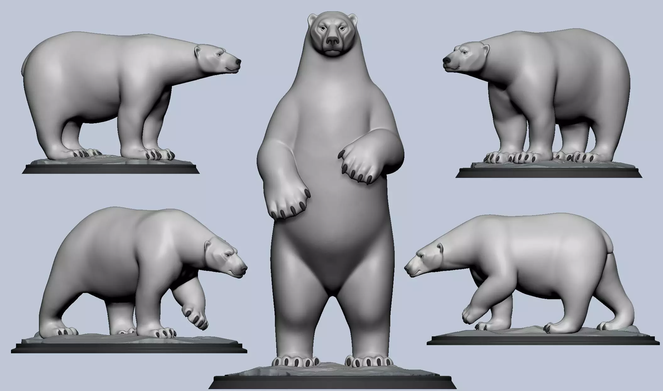 Animal :Polar Bear It is a work of molding three bears and different gestures. Suitable for printing, display stand