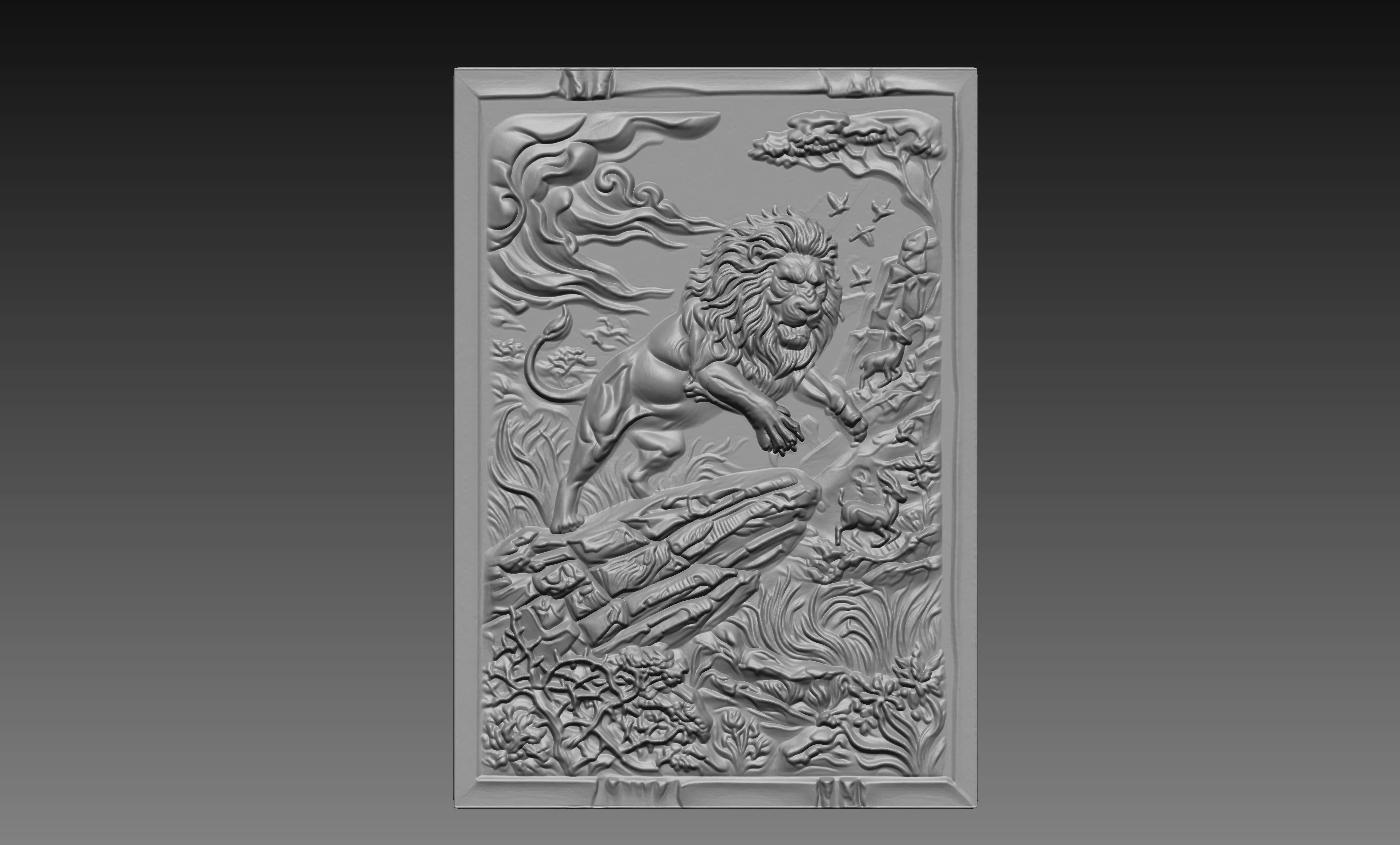 Designed with deep relief and bold detail, this lion relief model highlights muscular movement, flowing mane, and natural terrain, making it ideal for creating impactful CNC carvings, wood panels, and 3D printing projects.