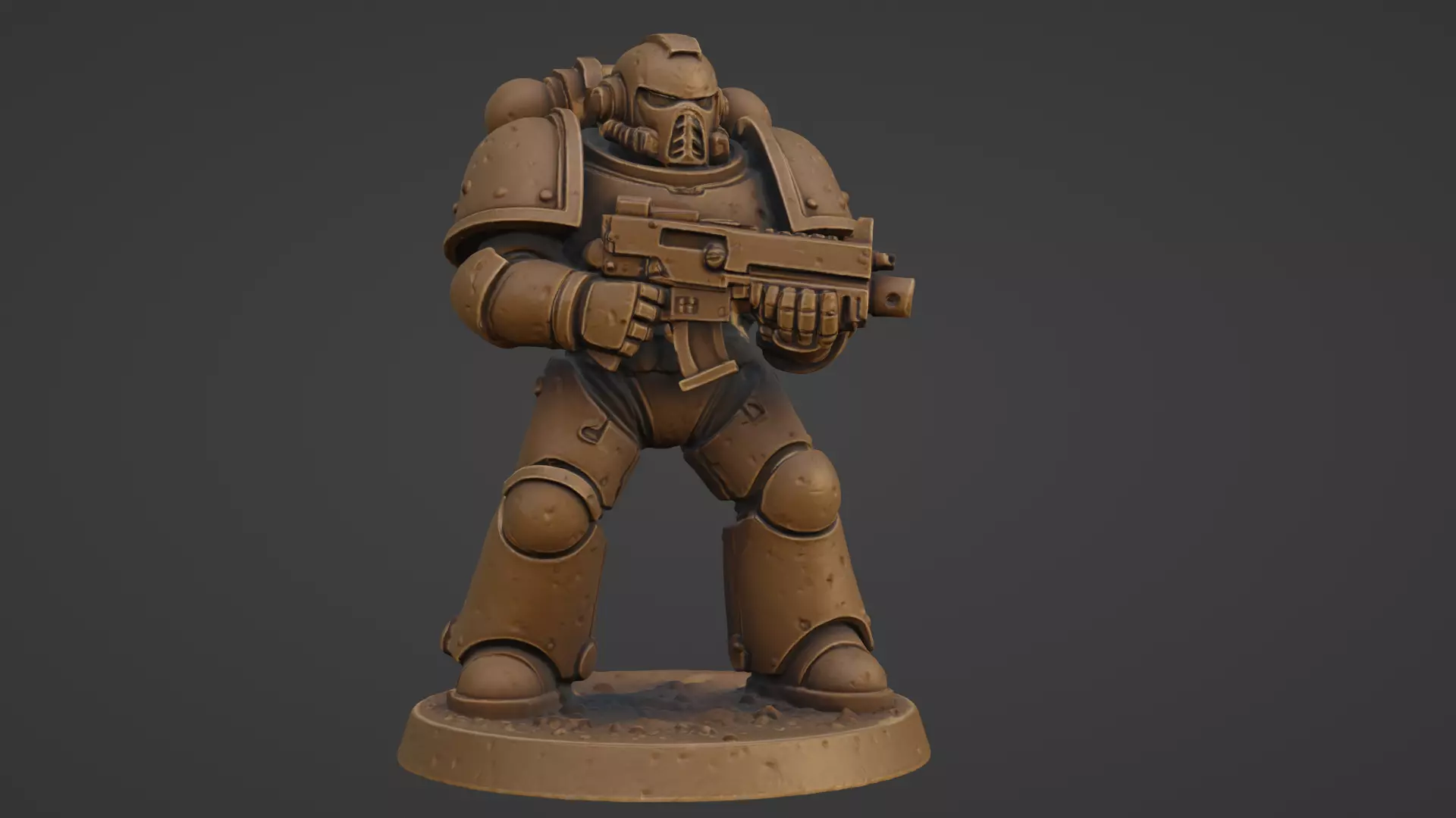 Field a rugged power-armored space trooper for your sci-fi tabletop or display shelf. This high-detail sculpt features chunky plate armor, vented backpack, ribbed respirator helm, and a compact carbine—all posed on a textured rocky base for instant presence after priming. Engineered as a single solid STL for easy slicing and sturdy prints.