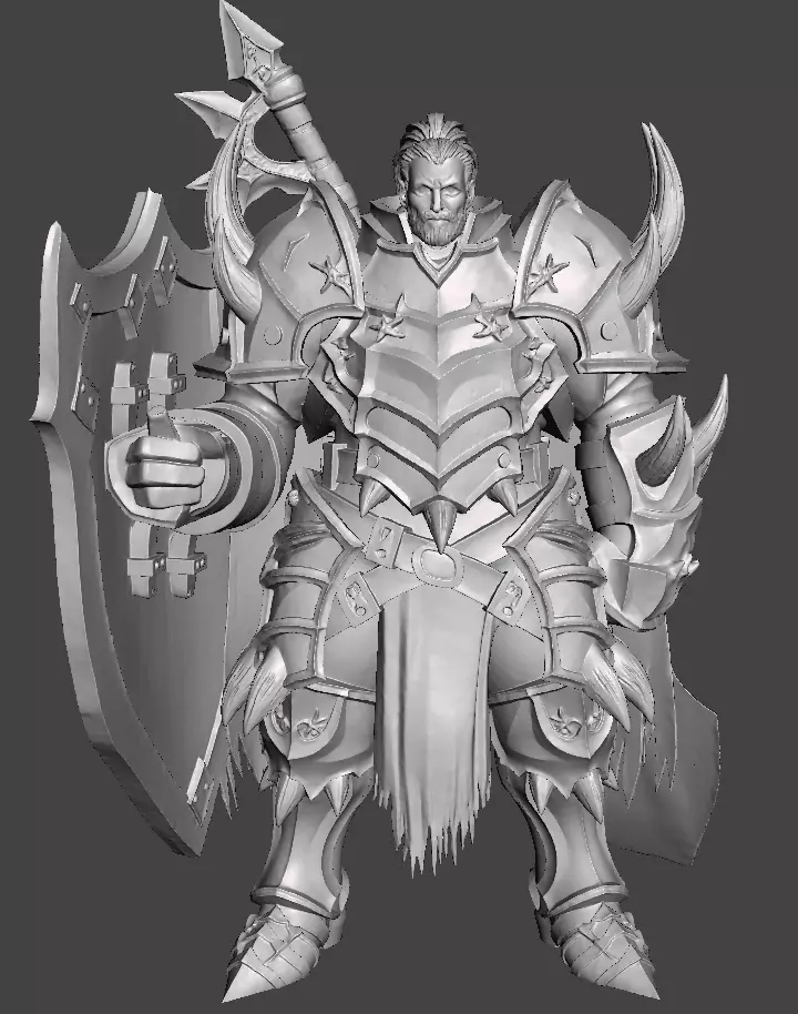 A powerful fantasy warrior clad in heavy, ornate armor, wielding a massive shield and weapon. Featuring sharp, aggressive details and a heroic stance, this highly detailed model is perfect for 3D printing, tabletop games, display, or collectible figures. Print-ready and suitable for scaling.