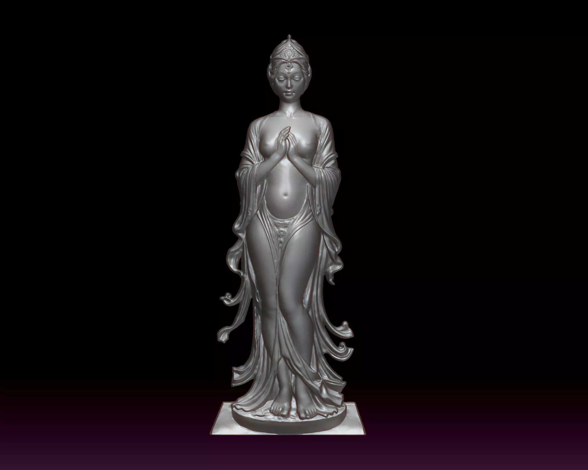 This beautifully detailed 3D relief features a serene woman in a prayer pose, adorned with flowing garments and a symbolically designed headdress. Embodying peace, grace, and mysticism, this piece is perfect for spiritual spaces, artistic collections, and decorative panels.