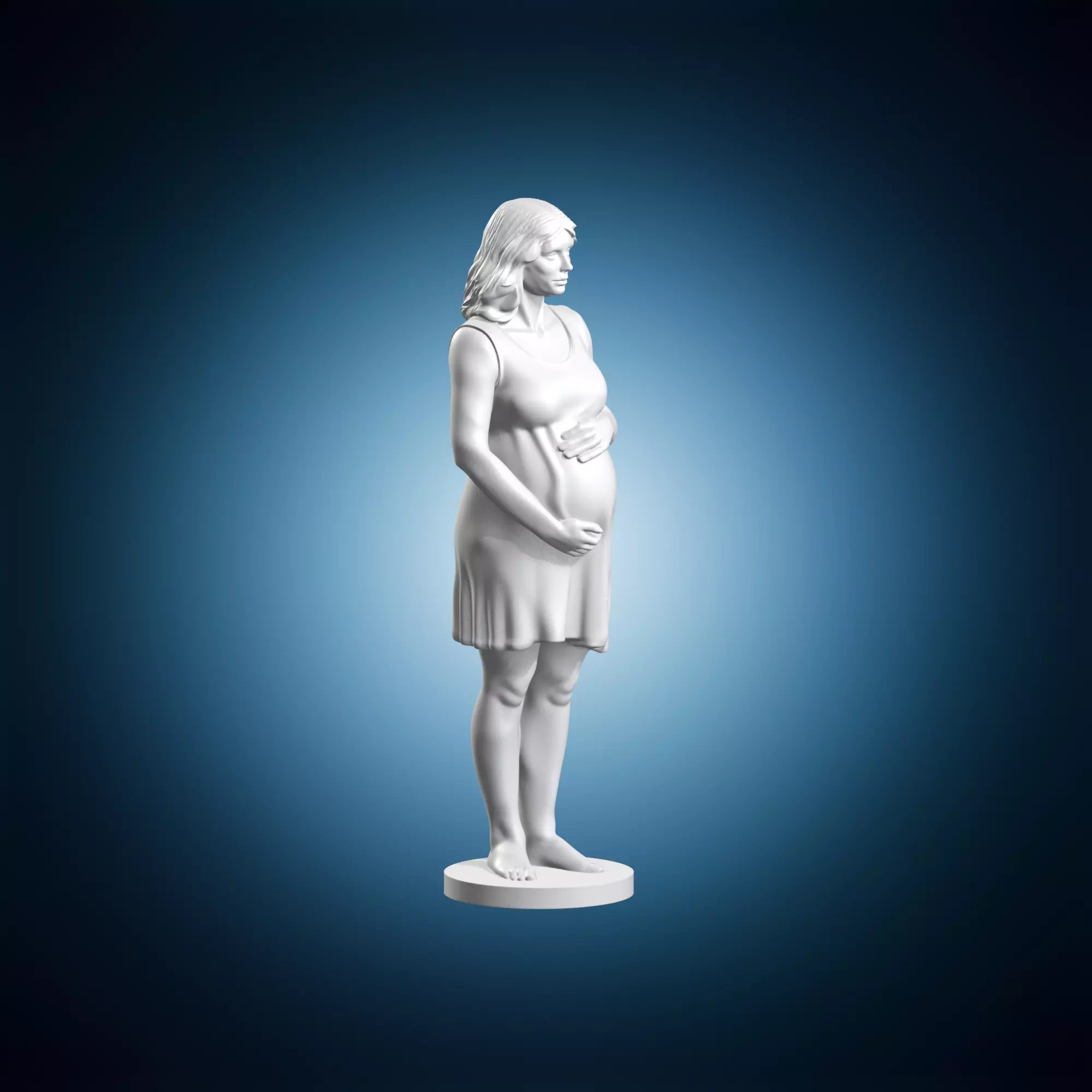 A 3D model of a pregnant woman as a sculpture miniature. This figurine is perfect for decorative purposes or as a unique gift idea. It is designed to be highly detailed and realistic, making it a great addition to any collection. The model can be used in various applications such as architectural visualization, product design, or artistic projects. It is also suitable for educational purposes or as a tool for creative professionals.