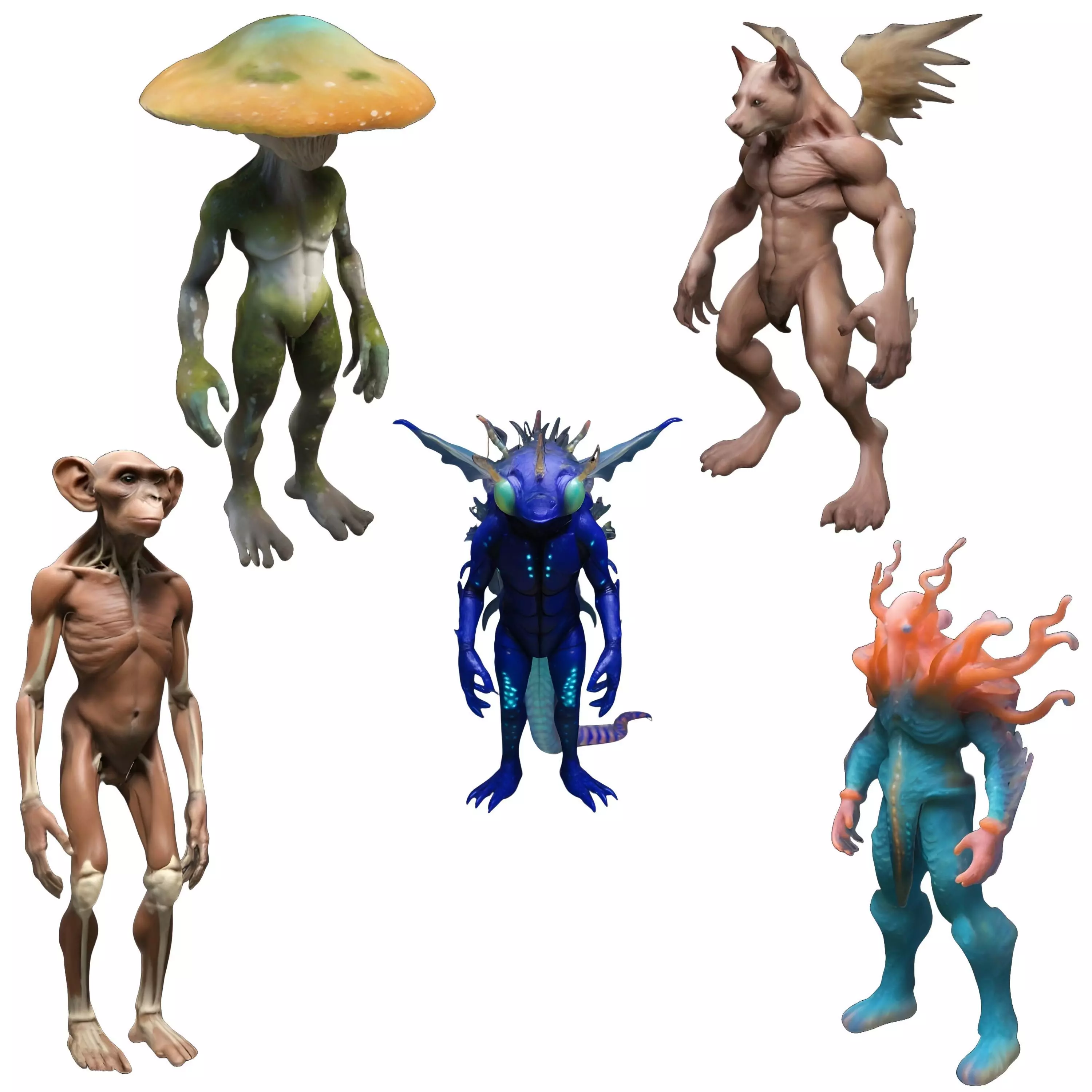 - Primal Wanderer: An evolved primate with graceful, elongated limbs