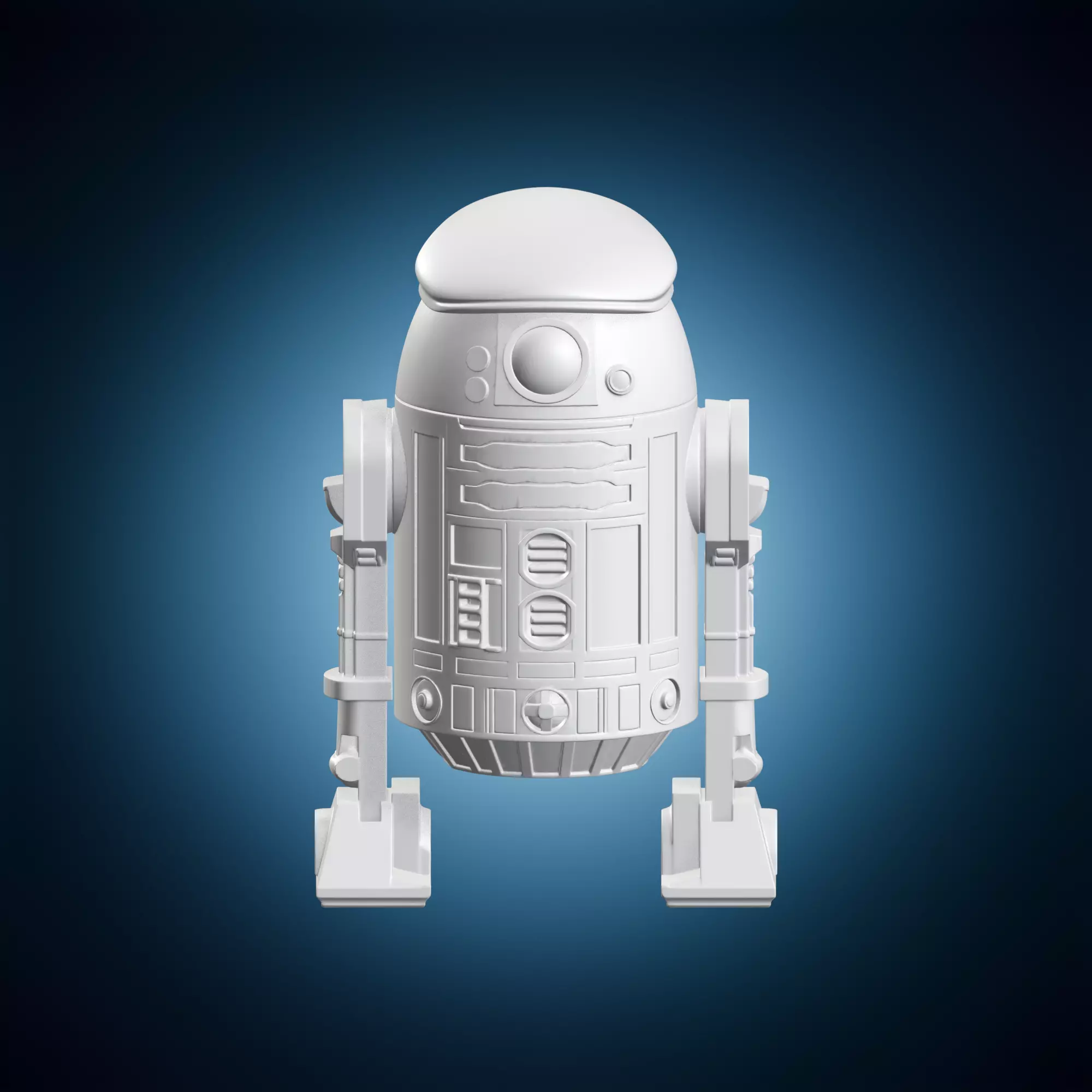 A 3D printed digital model of R2d2 wearing a flat cap, suitable for enthusiasts and collectors of Star Wars characters. The model is designed to be highly detailed and accurate, with intricate textures and surfaces. It can be used in various applications such as gaming, animation, or architecture. This model is also ideal for educational purposes, allowing students to learn about 3D modeling techniques and character design.