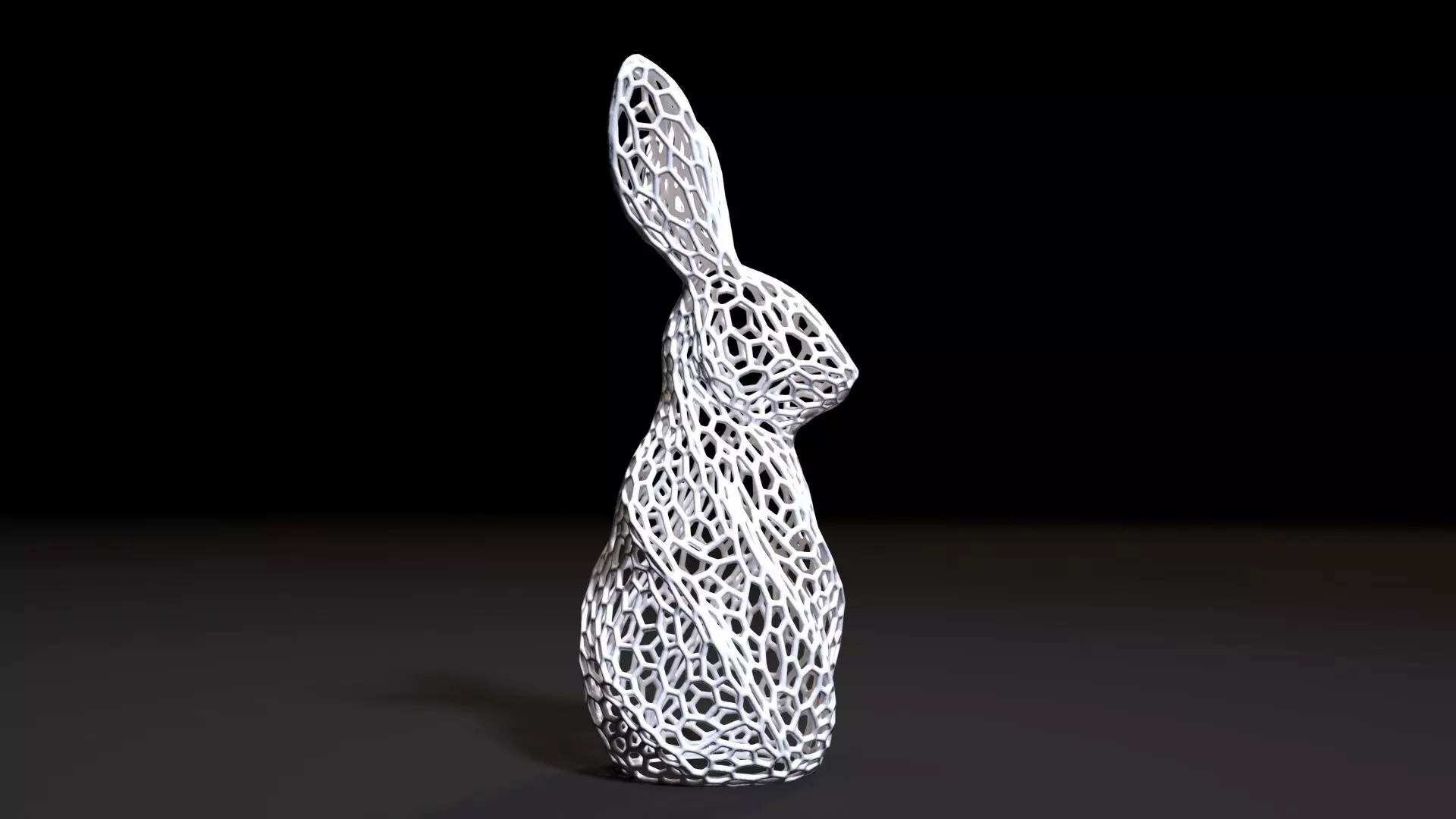 We present a unique 3D model of a cute Rabbit, made in the modern Voronoi style - using mesh polygonal elements that create the effect of a light geometric grid. This stylish figurine looks modern and elegant, great for interior decoration.