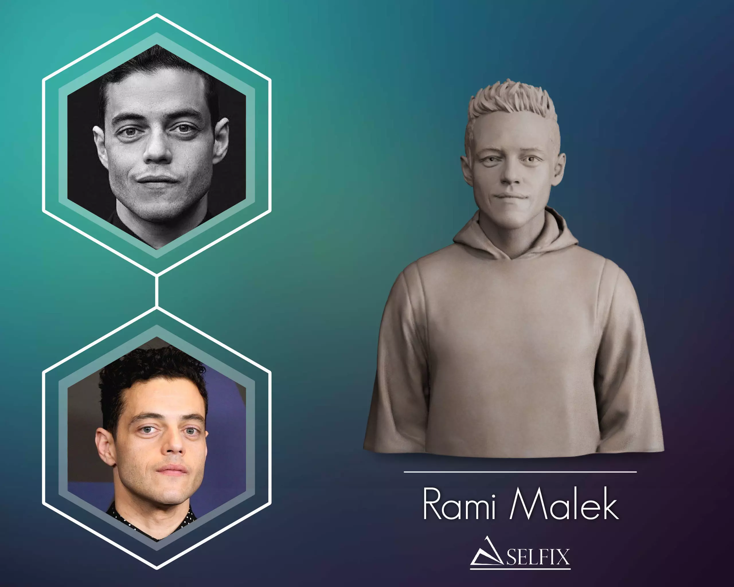 Rami Malek's portrait sculpture is ready to be printed in 3D in any size you want. Contact us if you need any changes or have any questions.