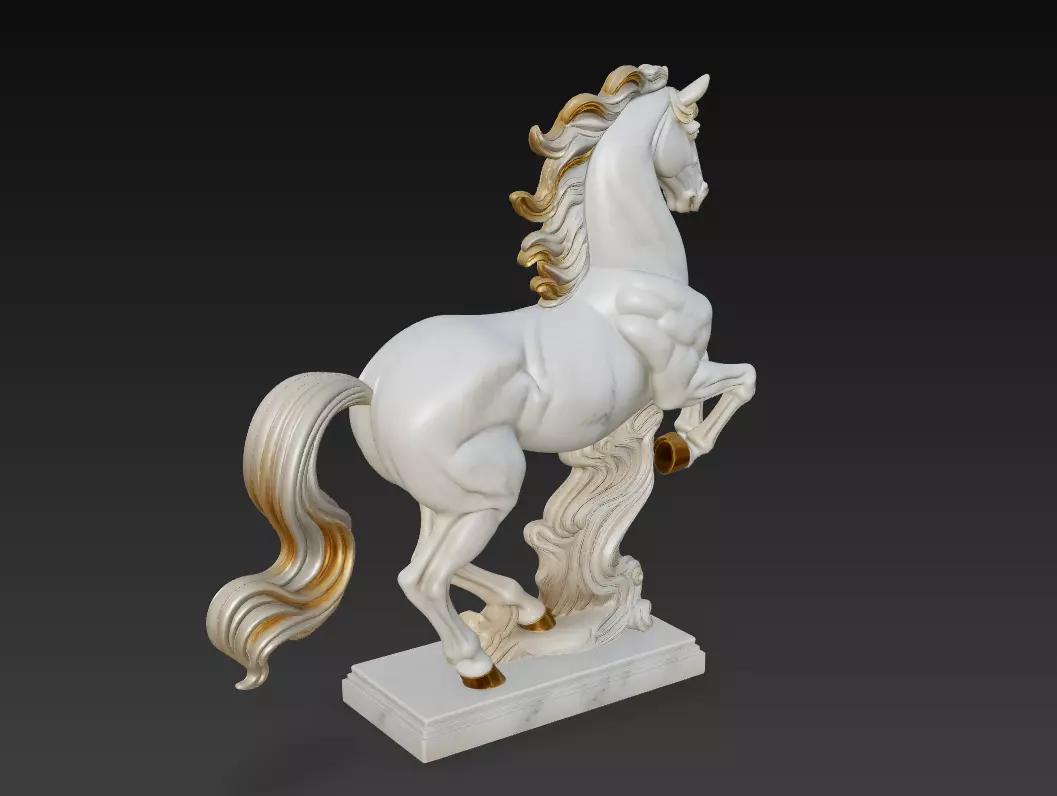 The Regal Stallion 3D Model captures the essence of strength, grace, and luxury through the timeless beauty of white marble and gilded accents. Designed in a dynamic rearing pose, this sculpture showcases the raw power and elegance of the horse — symbolizing vitality and noble spirit.