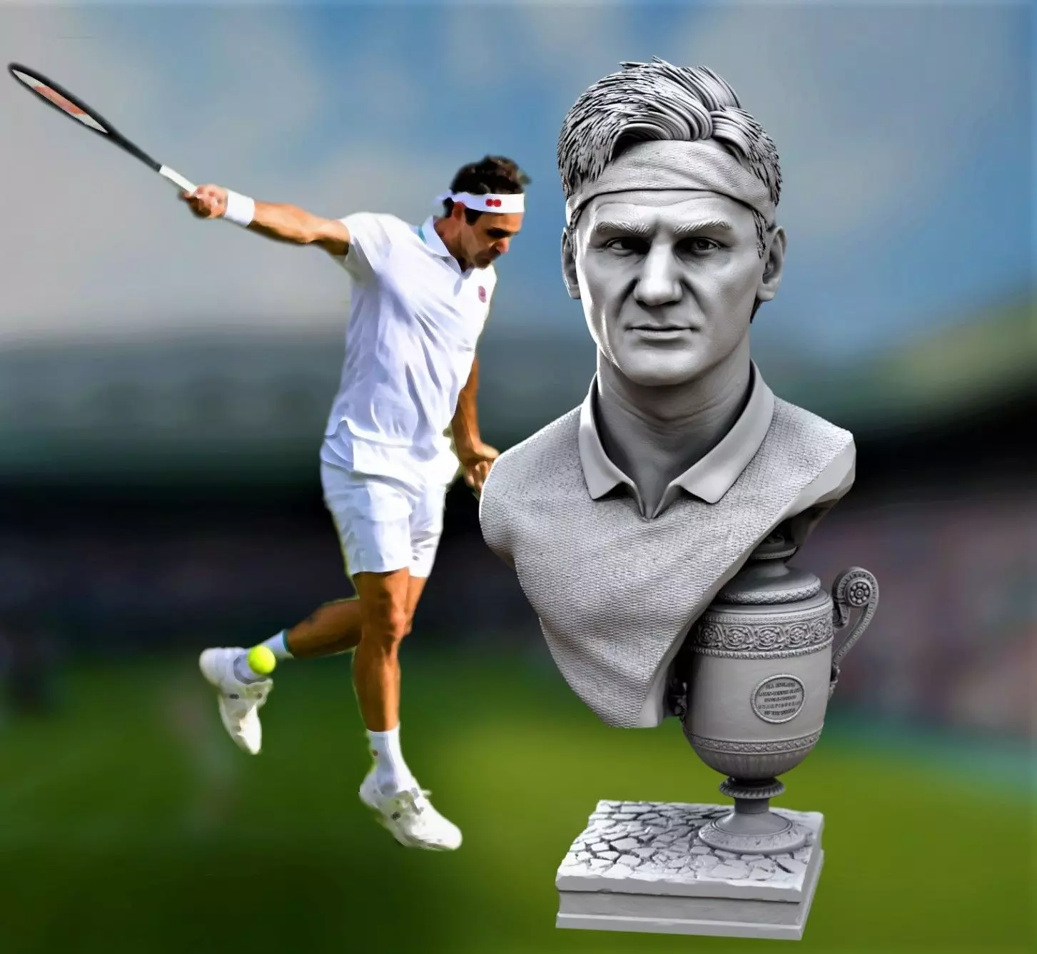 -Print-ready bust of a legendary tennis player, and member of the Big 3, Roger Federer.