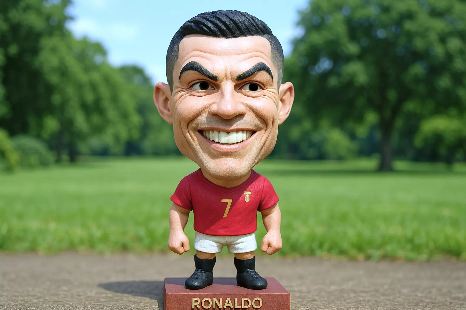 Despite its compact size, the statue is meticulously detailed, including his familiar club or national team jersey. It is a perfect fusion of caricature art and a tribute to the beauty of sports.