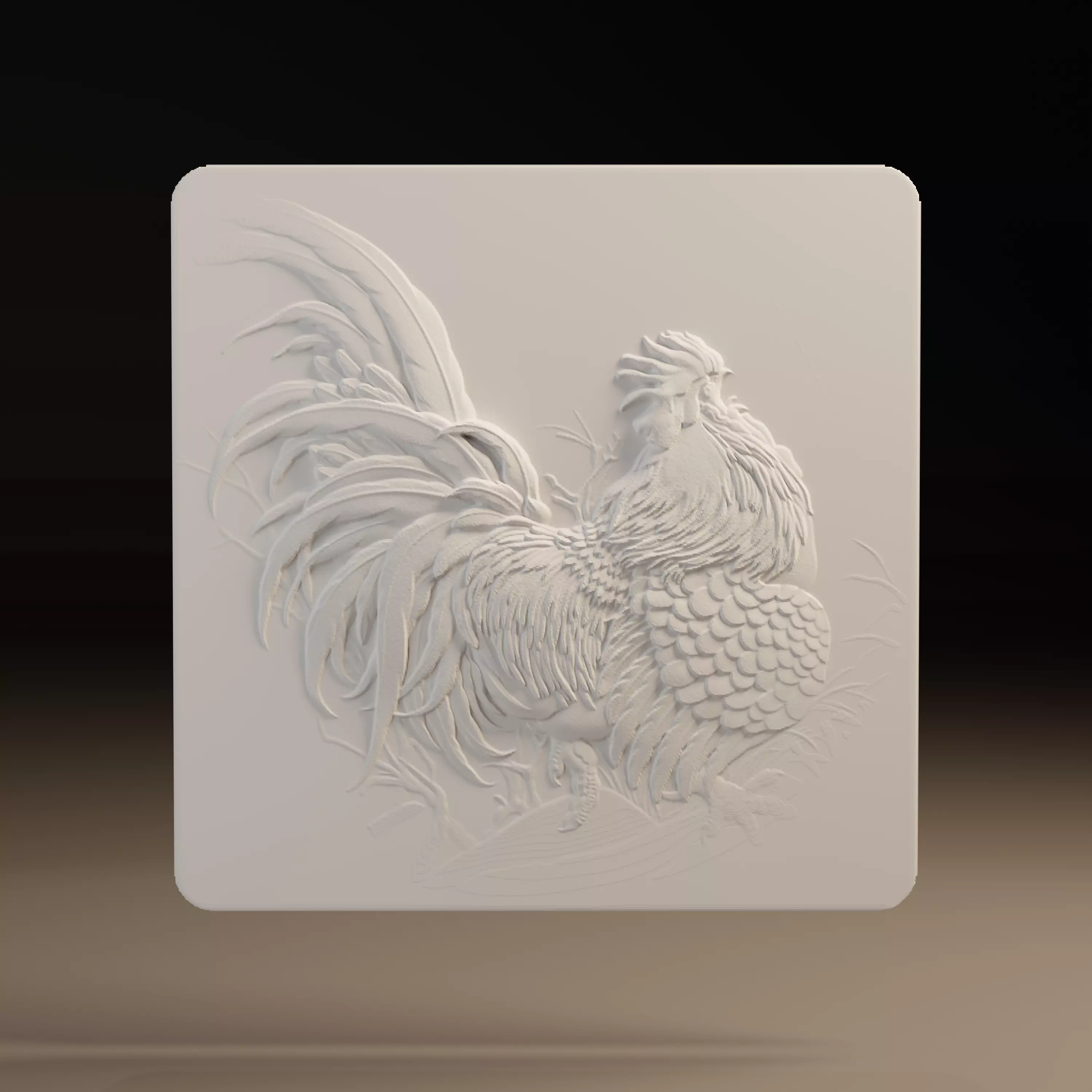 Detailed rooster relief model designed for CNC carving, woodworking and 3D printing projects.