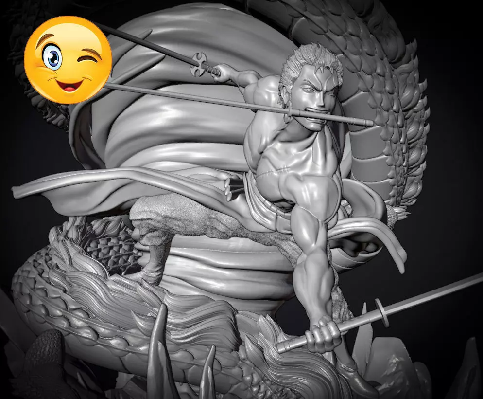 Nacido en el East Blue, Zoro es hijo de Tera y Roronoa Arashi, nieto de Shimotsuki Furiko y Roronoa Pinzoro, y sobrino nieto de Shimotsuki Ushimaru, lo que le convierte en descendiente matrilineal tanto de la familia Shimotsuki del País de Wano como del legendario samurái Shimotsuki Ryuma.[7] Fue el primer miembro en unirse a la tripulación,[18] y es considerado parte del Trío Monstruoso (怪物三人組 Kaibutsu San-ningumi?) junto a Luffy y Sanji.[19][20] Su sueño es convertirse en el mejor espadachín del mundo.[21] Zoro junto a su capitán, también es considerado uno de los Once Supernovas que forman parte de «la peor generación».[22]