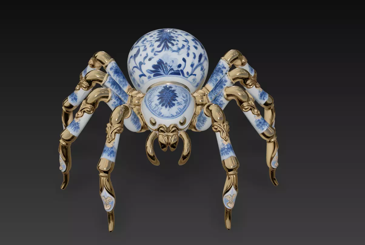 The Royal Porcelain Spider 3D Model is a luxurious fusion of artistry and fantasy — crafted to resemble a living jewel. Inspired by fine porcelain craftsmanship, this model combines delicate blue floral motifs with golden accents, bringing sophistication and surreal imagination into one unique design.