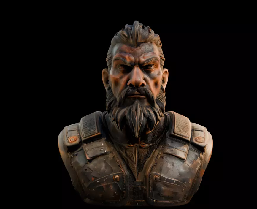 The model is equipped with a futuristic armored vest and shoulder pads, showcasing intricate textures, bolts, and fabric patterns. Perfect for use in games, cinematics, or concept art projects. Optimized for printing with clean topology and professional detailing, this asset is ideal for character design, digital sculpting practice, or as a base for further customization.
