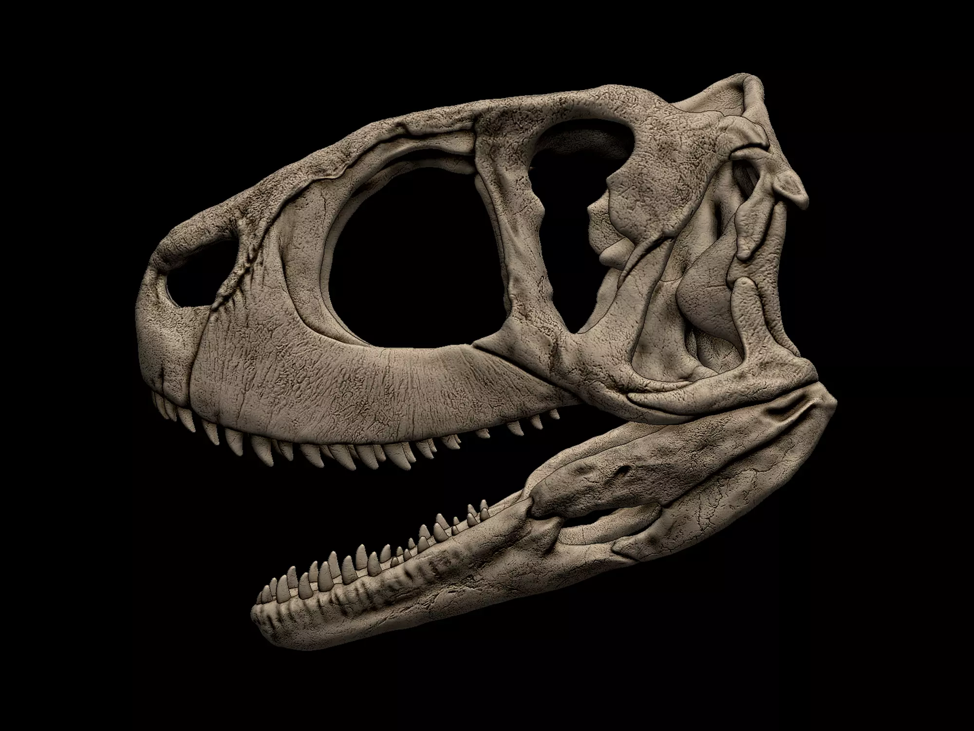 This is a life size 3d digital model skull of a Rugops. OBJ, ZTL, PLY, FBX and STL files. jaw is seperated.