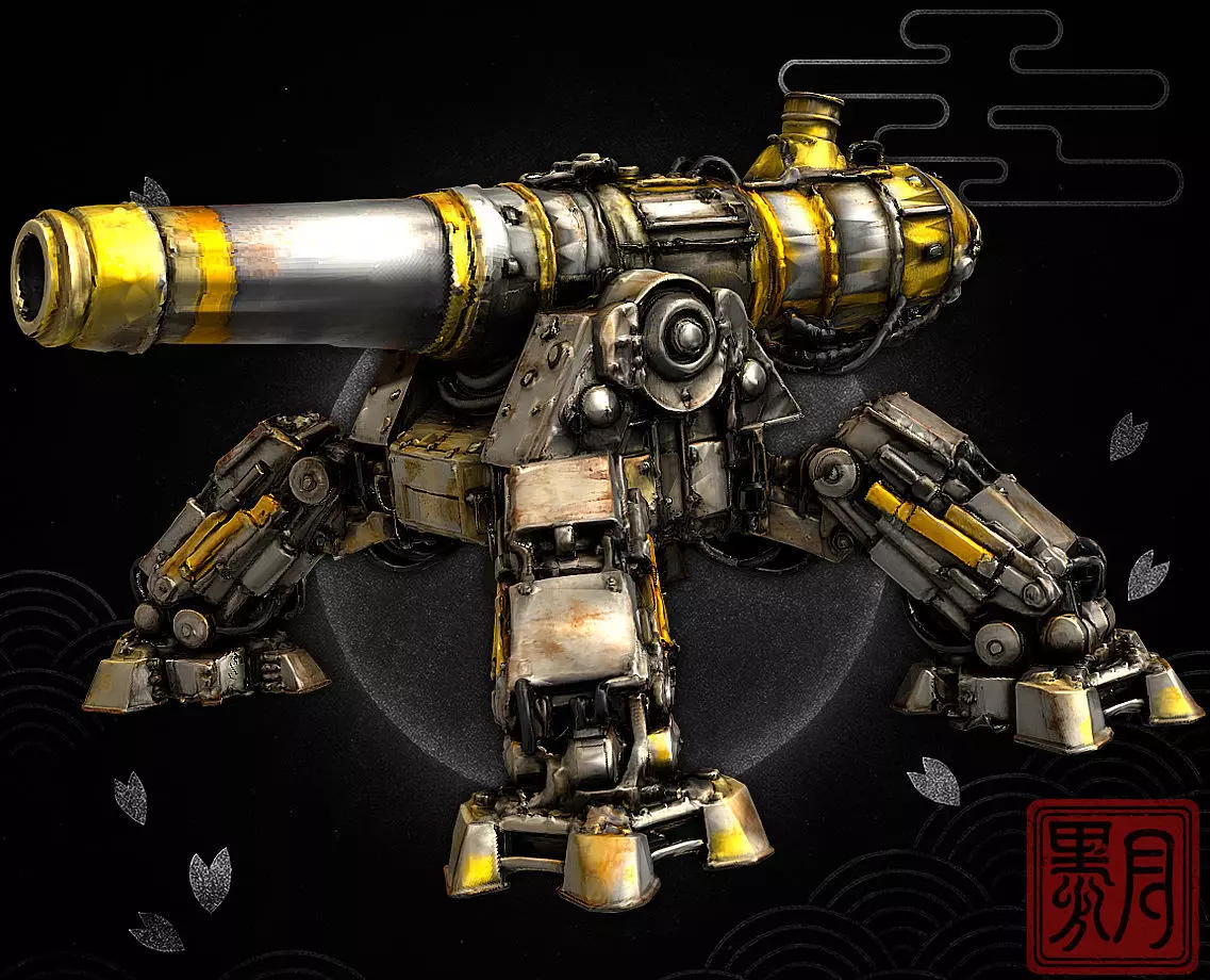 A heavy, battle-worn siege cannon forged from iron, steel, and centuries of corrosion.This high-detail artillery model captures the brutal presence of an ancient battlefield weapon, combining mechanical realism with a gritty, industrial aesthetic.