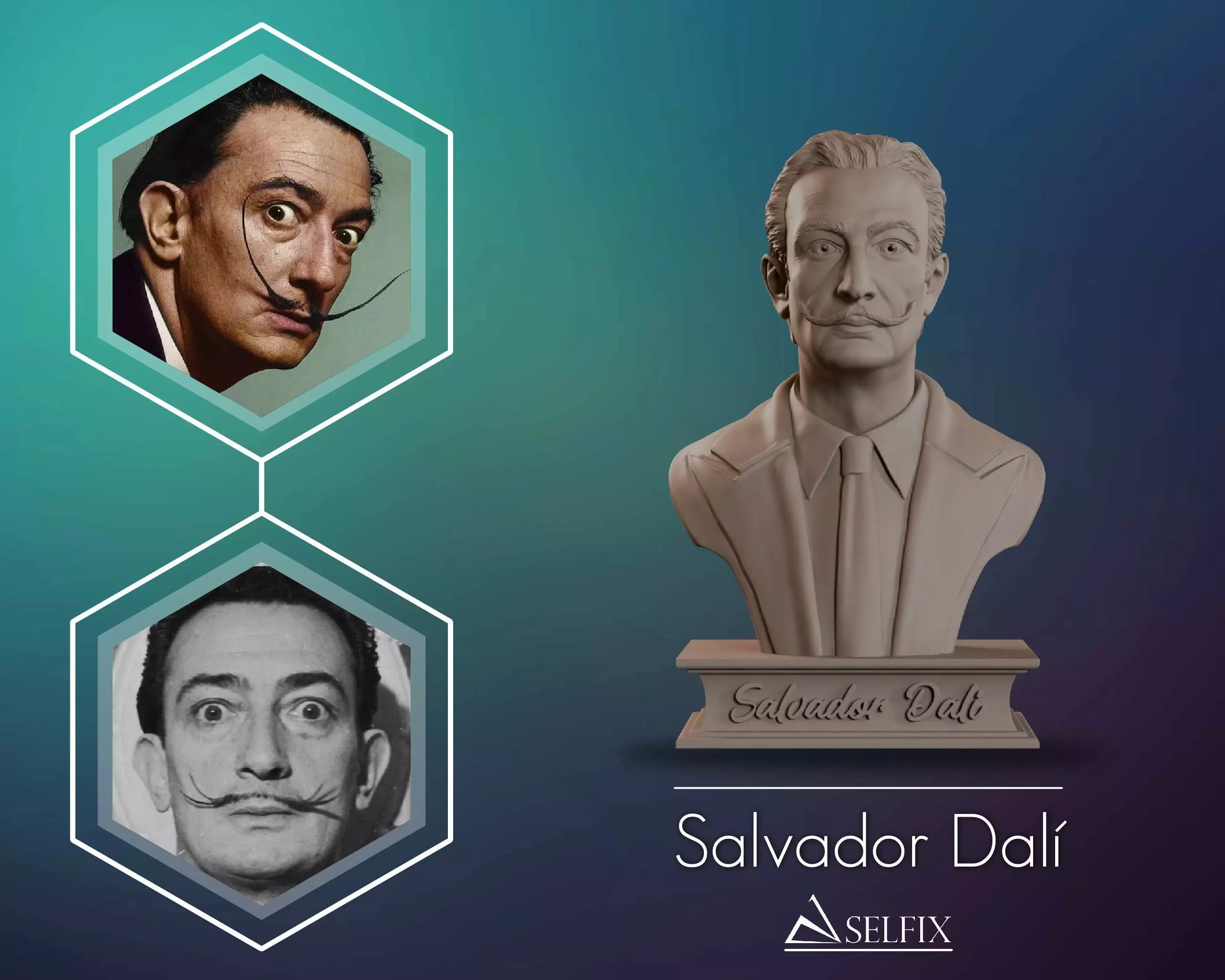 3D printable bust sculpture of the Spanish surrealist artist celebrated for his imaginative vision and groundbreaking influence on modern art. As one of the leading figures of the Surrealist movement, Dalí transformed dreamlike imagery, symbolism, and psychological themes into instantly recognizable works that continue to shape contemporary visual culture.