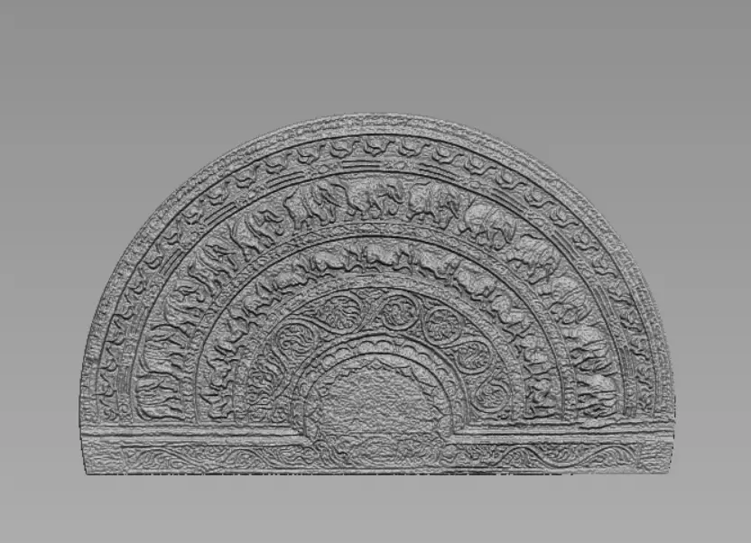 Sandakada Pahana, also known as Moonstone, is a unique feature of the architecture of ancient Sri Lanka.It is an elaborately carved semi-circular stone slab, usually placed at the bottom of staircases and entrances. First seen in the latter stage of the Anuradhapura period, the sandakada pahana evolved through the Polonnaruwa, Gampola and Kandyan period. According to historians, the sandakada pahana symbolises the cycle of Samsāra in Buddhism.
