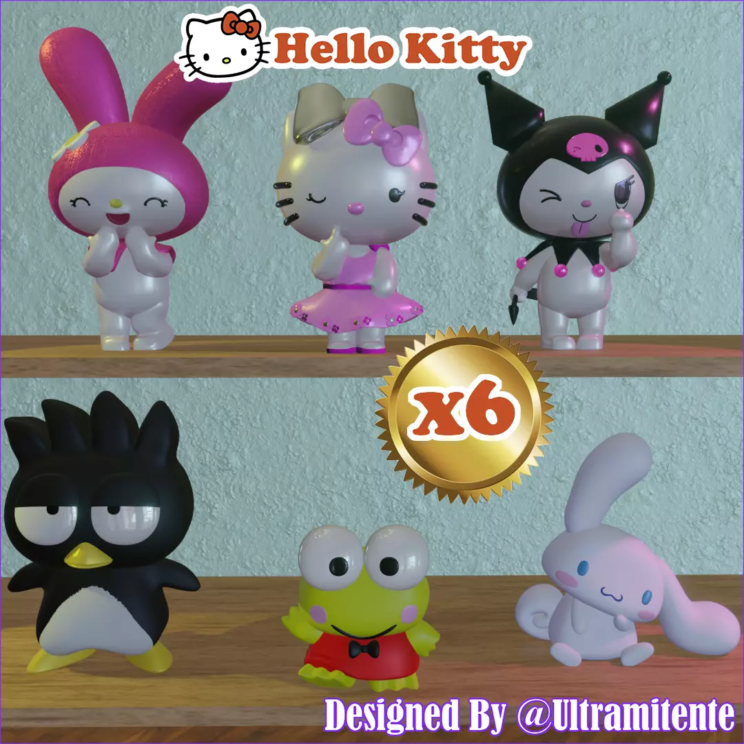 Asombroso Pack de SEIS diseños de Helo Kitty and friends totalmente escalables en formato STL.