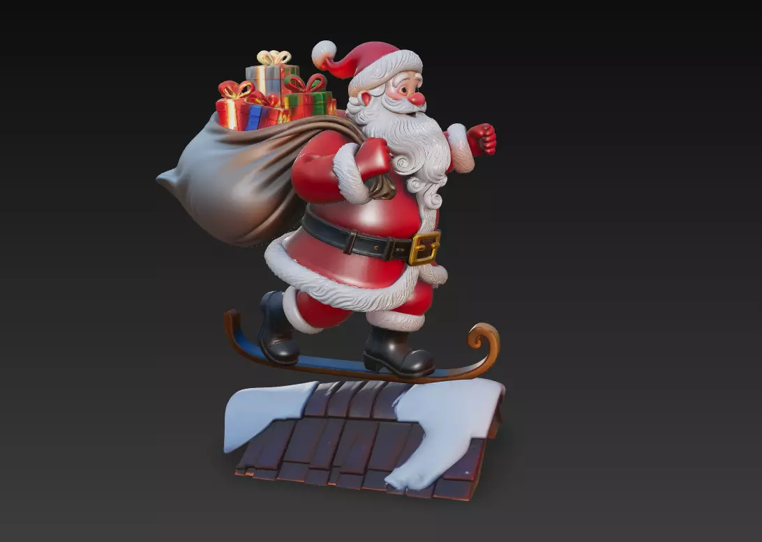 Celebrate the magic of Christmas with this delightful Santa Claus 3D sculpture, carrying a large sack full of beautifully wrapped presents. The model captures the joyful energy and warmth of Santa as he steps across a snowy rooftop, ready to spread holiday cheer.