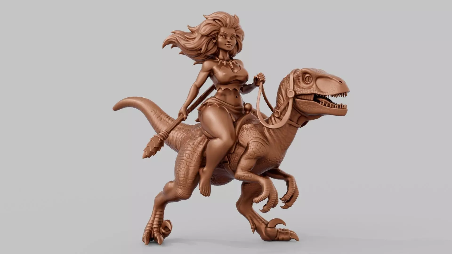 Emerging from the untamed wilds of a forgotten era, the Primal Huntress embodies the raw synergy between human cunning and prehistoric ferocity. Perched atop her swift, taloned predator, she is the ultimate expression of survival in its most beautiful and brutal form.