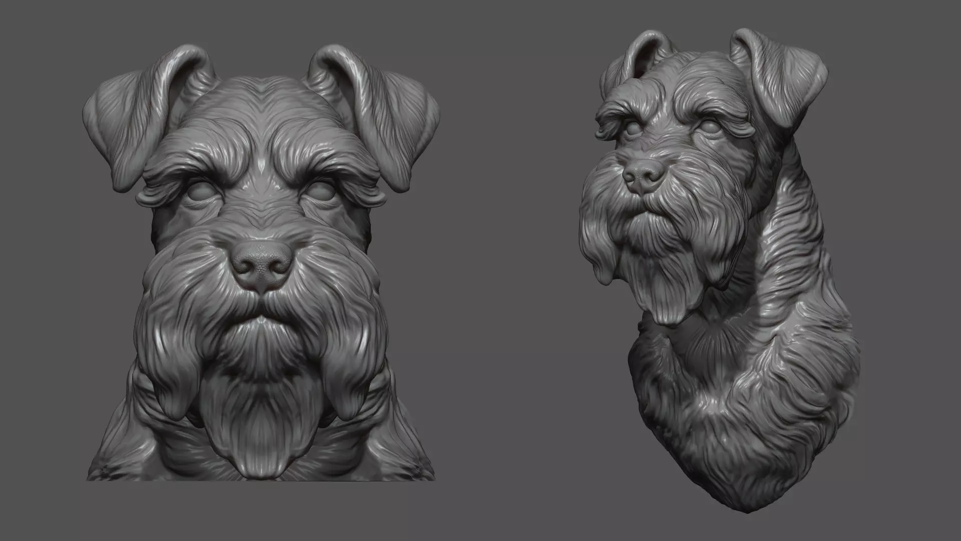 500K STL, OBJ triangulated, Schnauzer bust on the base merged