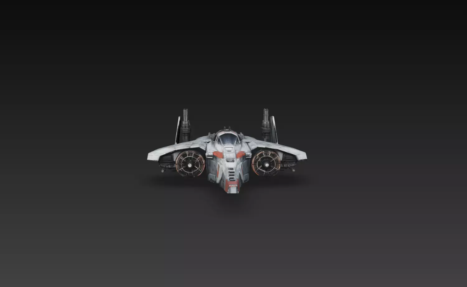 The design combines compact wing geometry, dual engine systems, and visible weapon-ready structures that enhance its aggressive yet controlled appearance. The central cockpit, reinforced body panels, and mechanical detailing create a strong futuristic military identity while maintaining clean symmetry and visual clarity.