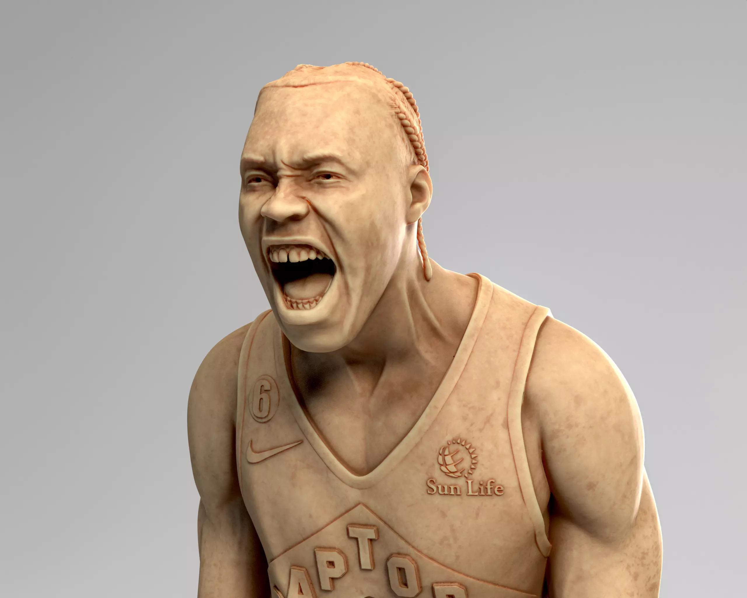 You can feel the electricity in the air just by looking at this 3D model! Barnes, fists clenched, face lit up with that unmistakable fire, capturing the essence of pure, unfiltered intensity. This is the Scottie Barnes we’ve seen time and time again—relentless, fearless, and leaving it all on the court!
