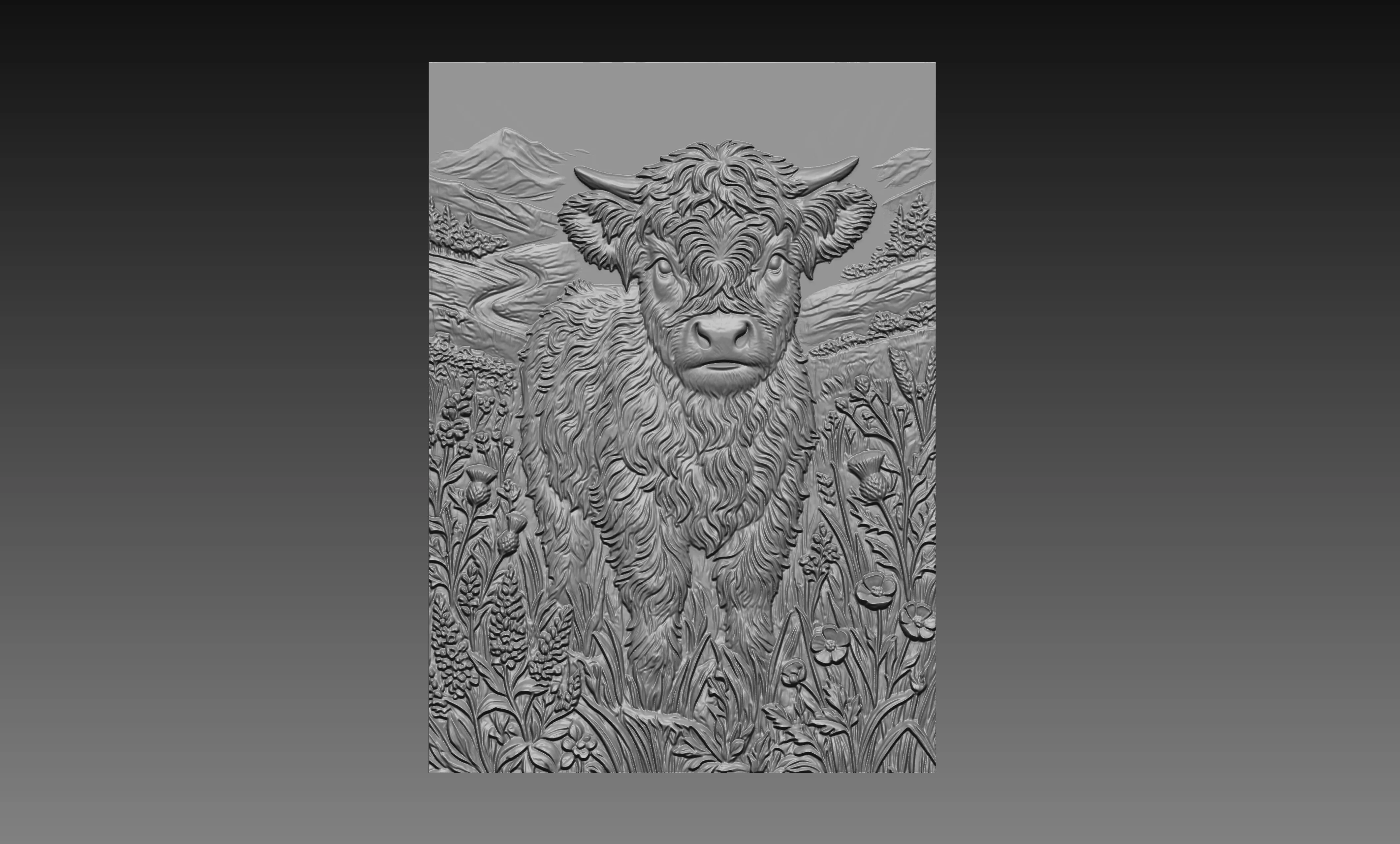 Designed with layered depth and fine detail, this highland cow relief model highlights shaggy fur texture, gentle expression, and delicate meadow elements—making it ideal for creating beautiful CNC carvings, wood panels, and 3D printing projects.