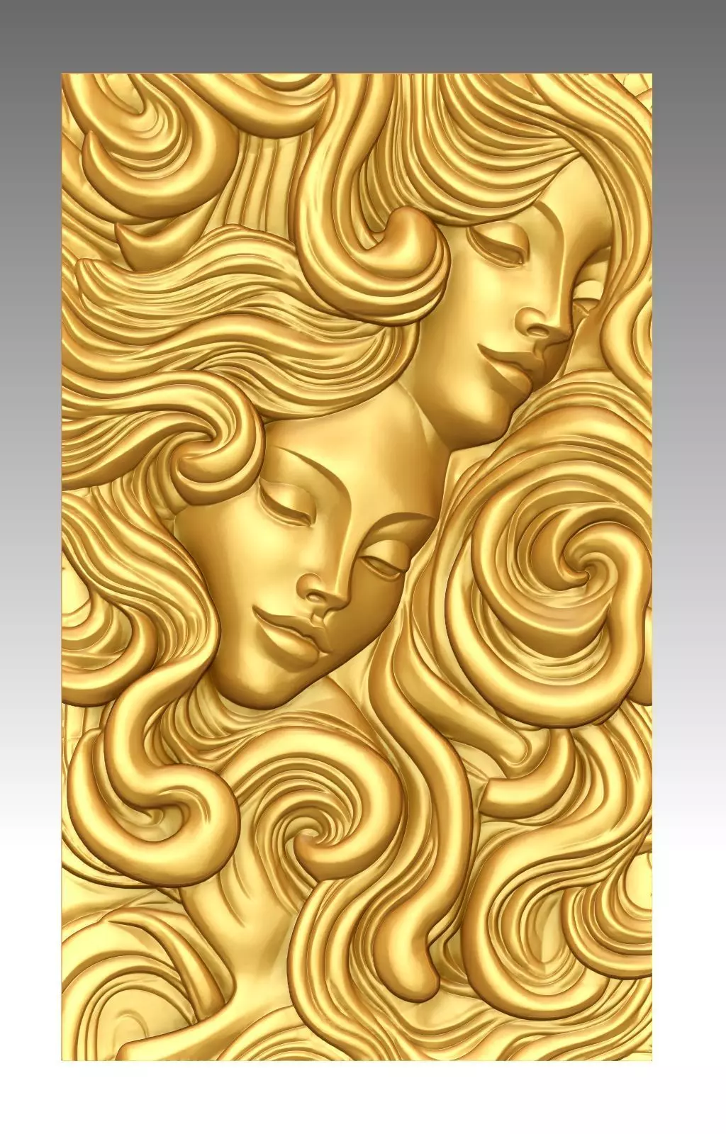 Serenity in Motion – Dual Goddess Marble Panel is a high-detail bas-relief sculpture design ideal for premium stone carving, wood carving, CNC machining, or 3D printing. This elegant panel features two ethereal female figures with serene expressions, their flowing hair and faces intertwined in a poetic composition that symbolizes peace, beauty, and divine femininity.