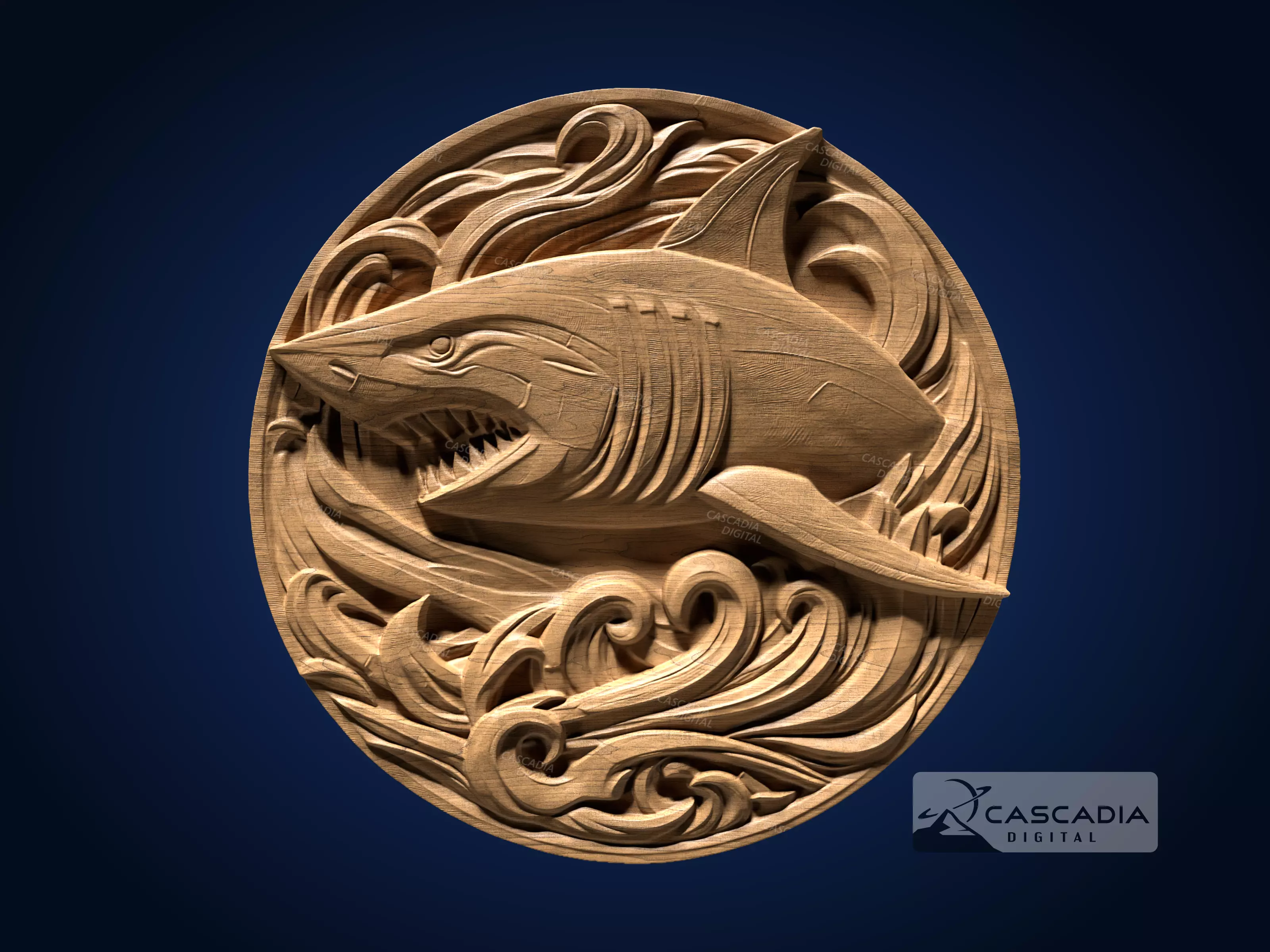 Shark Round - CNC Router Carving Casting animal 3D print model