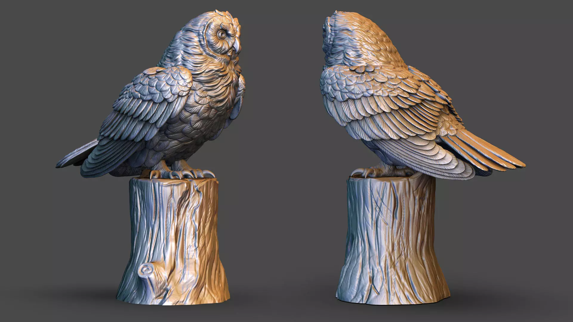 Merged Owl on Stump BaseMerged Owl StandingSeparated Owl on Stump Base & Keyed (2-Part Assembly: Body, Base)