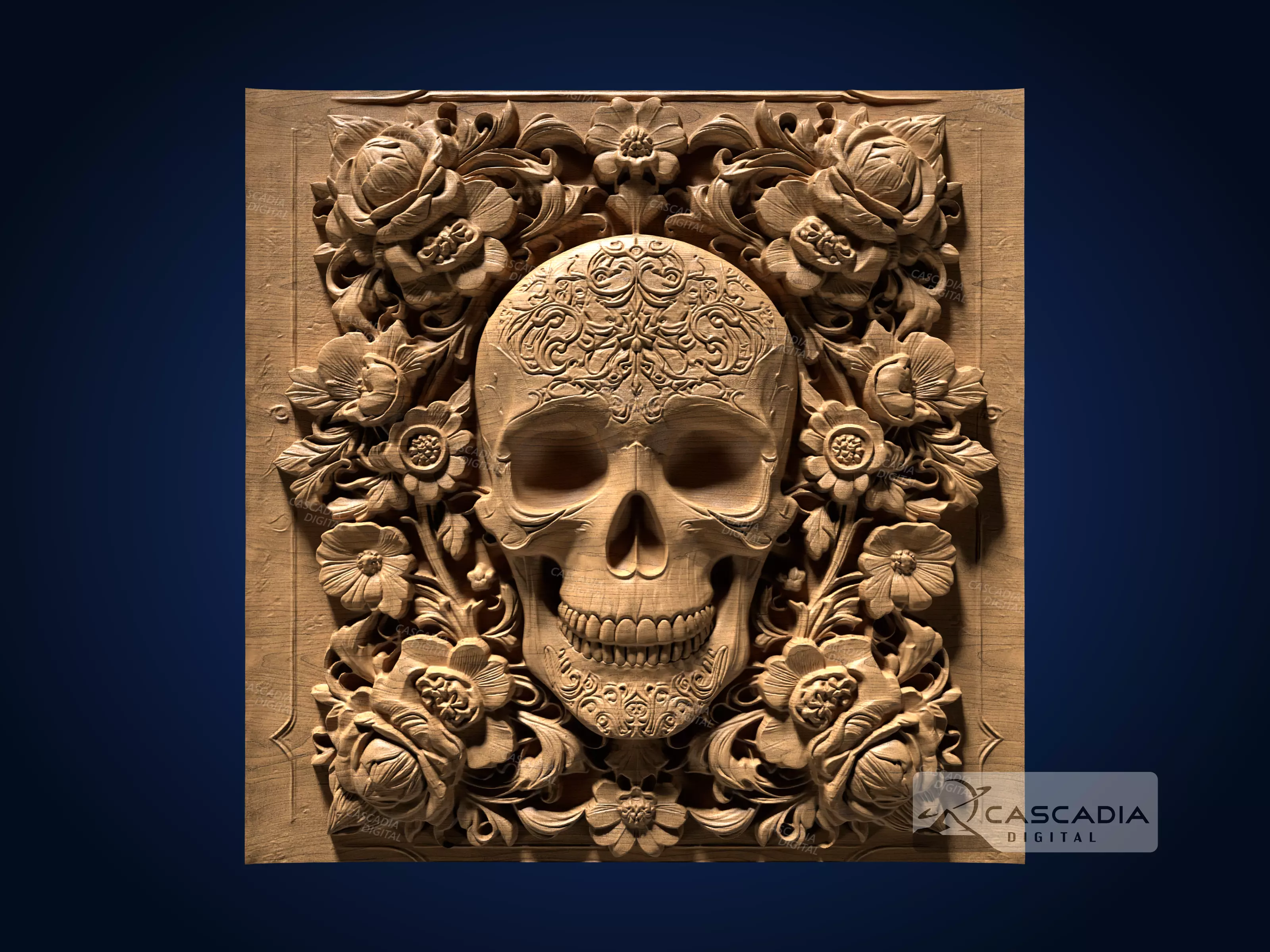 Skull Flowers - CNC Router Carving Casting skeleton 3D print model