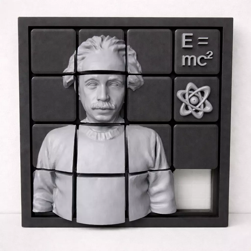 Slider Puzzle inspired by Albert Einstein– 3D Printable STL | Relief Wall Art & Interactive Puzzle