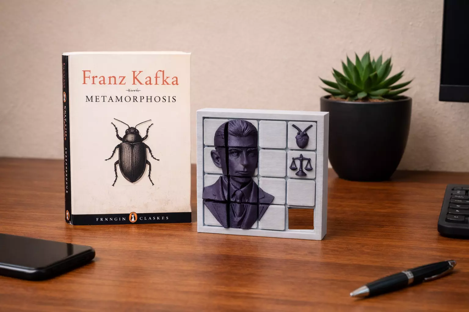 Slider Puzzle inspired by Franz Kafka – 3D Printable STL | Relief Wall Art & Interactive Puzzle