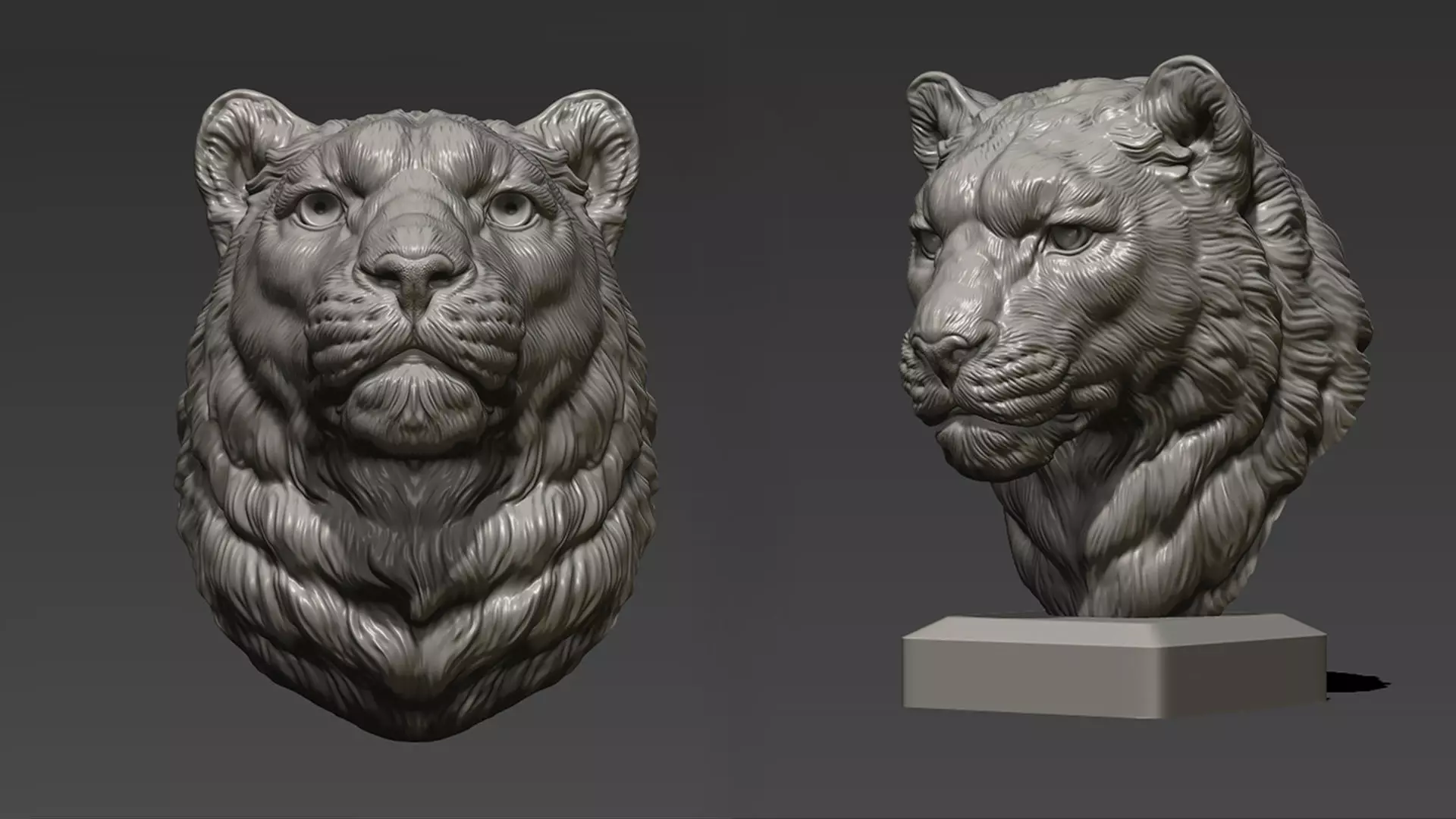 500K,100K STL, OBJ triangulated mesh Snow leopard bust - head and base