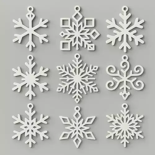 A 3D printable set of stylized snowflake ornaments featuring multiple unique designs, each optimized to print flat without supports. The collection includes a variety of symmetrical patterns — from simple six-pointed snowflakes to intricate geometric shapes — all designed with a small integrated loop for easy hanging on a Christmas tree, window, or holiday décor. Each snowflake uses smooth, clean geometry and balanced thickness for durable printing in PLA or resin. Lightweight, festive, and compact, these ornaments make perfect seasonal decorations or charming gift add-ons.