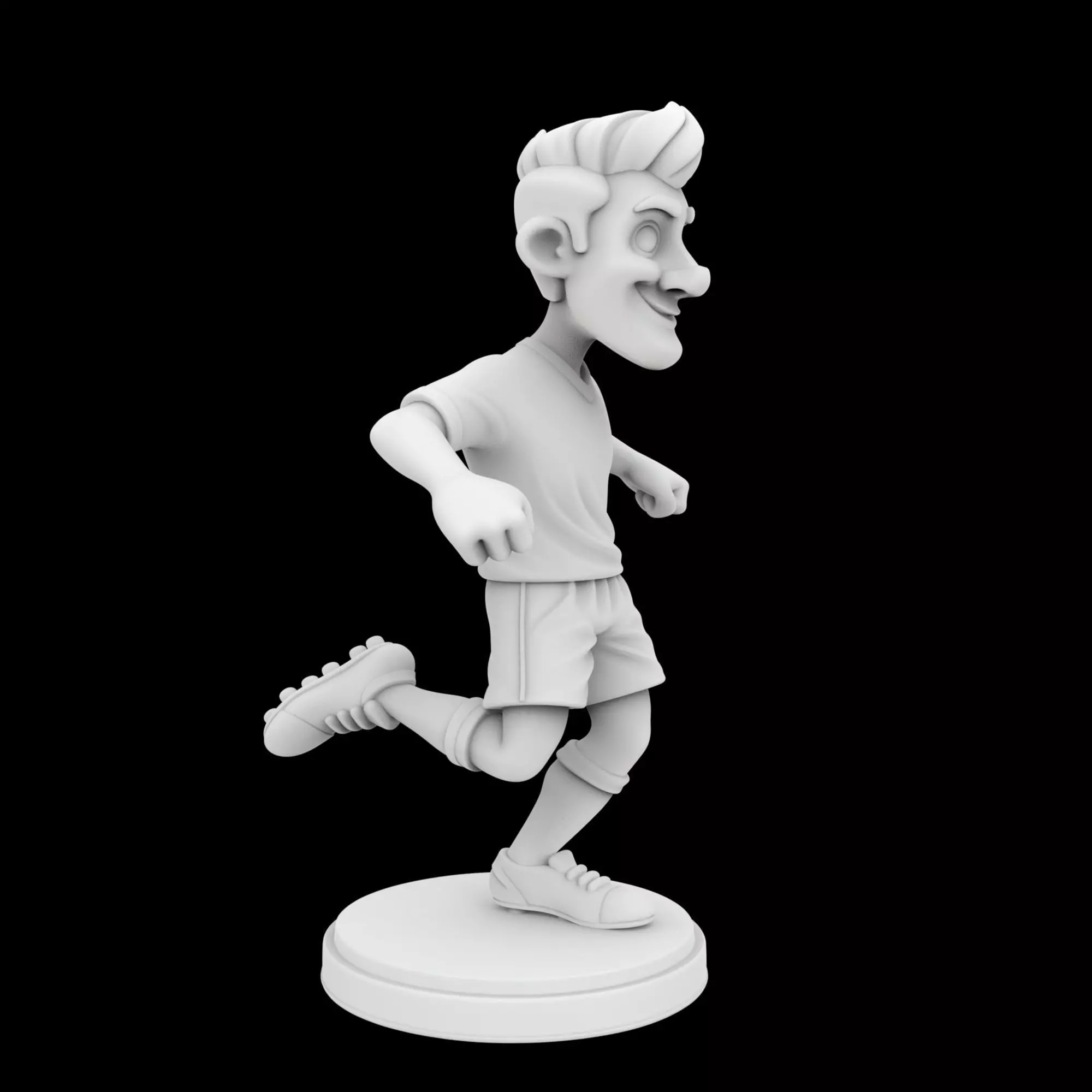 Introduce the vibrant Soccer Player Cartoon Character 3D Print Model. This unique digital sculpture captures the essence of the beautiful game with a playful and energetic design, perfect for fans of all ages. Depicting a dynamic soccer player in a classic action pose, this model brings a touch of sporting enthusiasm and animated charm to any setting. Its distinctive cartoon style ensures it stands out, making it an excellent centerpiece or a fun addition to a collection.