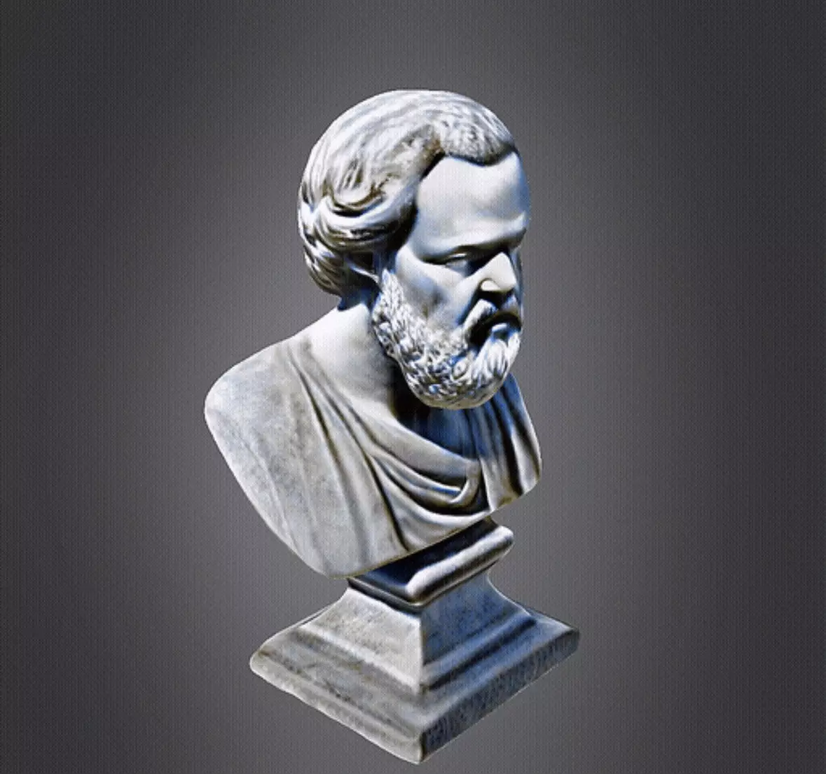 A 3D model of a Socrates bust would aim to capture the essence of the renowned philosopher from ancient Greece. Socrates is often depicted with a contemplative expression, reflecting his reputation for deep thinking and intellectual inquiry. The bust might showcase his distinctive features, including his balding head, wrinkled brow, and full beard. Attention to detail in sculpting his facial features, such as the lines around his eyes and mouth, would help convey a sense of wisdom and age. Additionally, the model might include a toga or other attire characteristic of ancient Greek philosophers, further emphasizing Socrates's historical and cultural context.