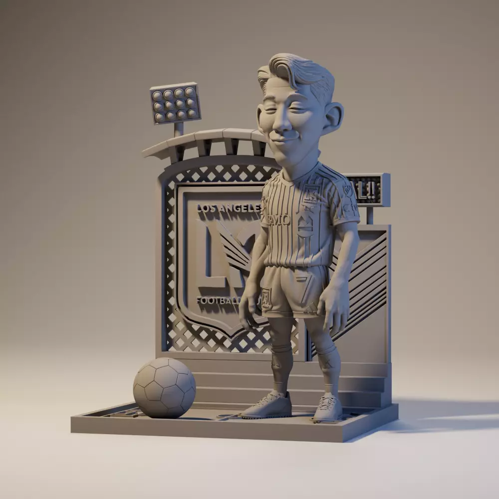 Bring the energy of Los Angeles Football Club to your desk with this high-quality 3D printable diorama of Son Heung-min wearing LAFC’s iconic black and gold uniform.Designed with balanced proportions, clean surfaces, and a full base featuring the LAFC crest and stadium floodlights — this is not just a figure, it’s a mini trophy for true fans.