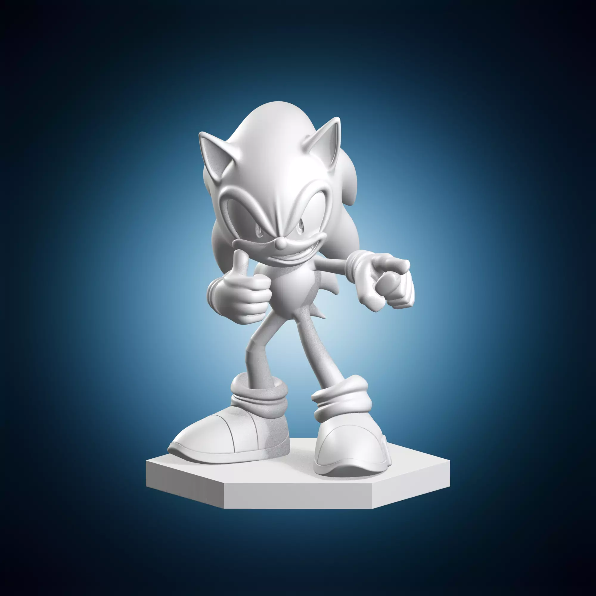 A highly detailed 3D model of Sonic the Hedgehog in a pointing character style, created for artistic or gaming purposes. The model features intricate details and textures, making it suitable for use in various applications such as animation, video games, or even architectural visualization. It is a unique and versatile piece that can be used to create a variety of characters or scenes. The model is designed to be compatible with most 3D modeling software and rendering engines, allowing users to easily import and customize the model to suit their needs.