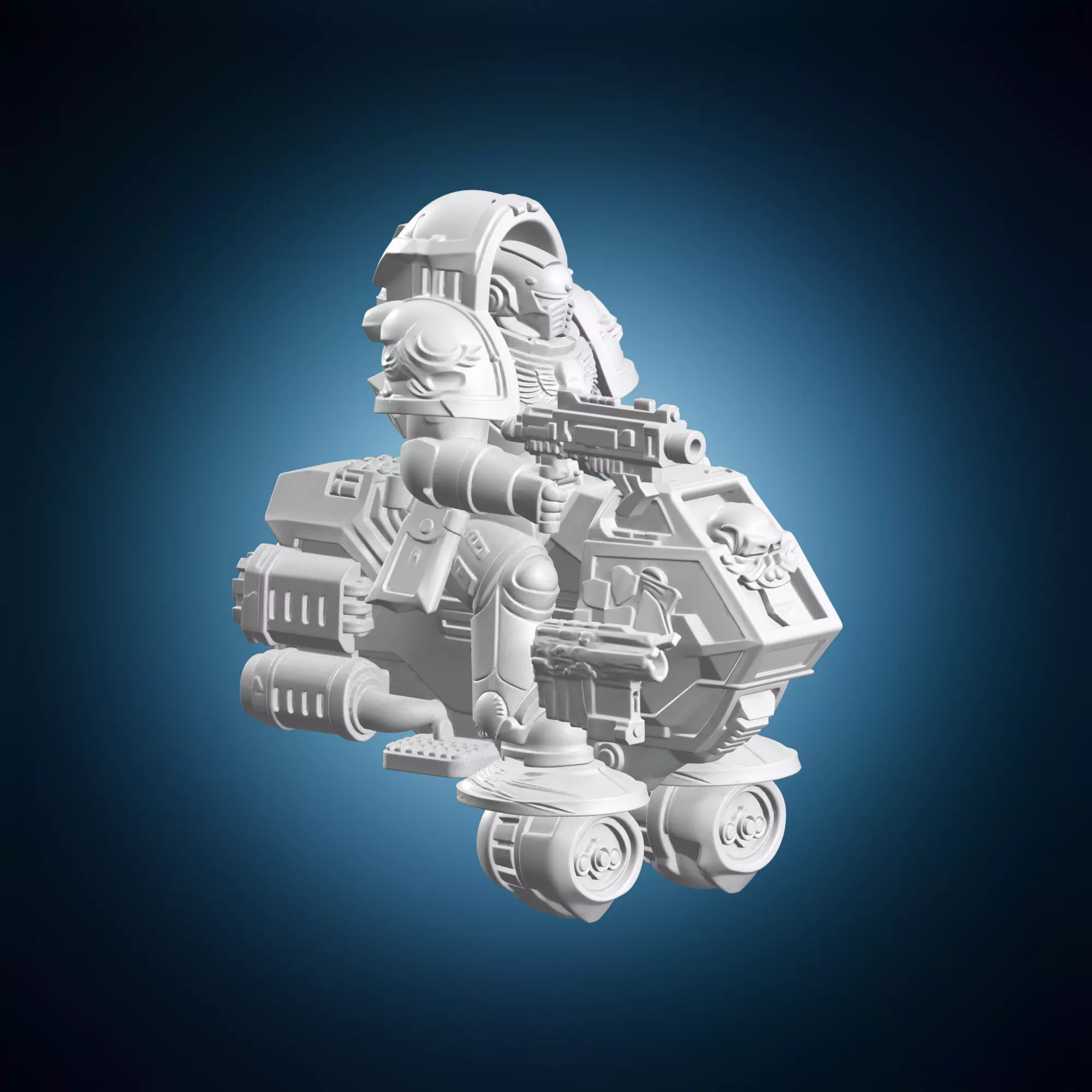 A futuristic hover bike inspired by the iconic Space Marines from the 40,000 universe, this model is a must-have for fans of science fiction and gaming. The sleek design and advanced technology make it a perfect addition to any collection. With its metallic finish and detailed features, this model will transport you to a world of intergalactic adventure. Bring home this incredible piece of sci-fi art and showcase your love for the universe.