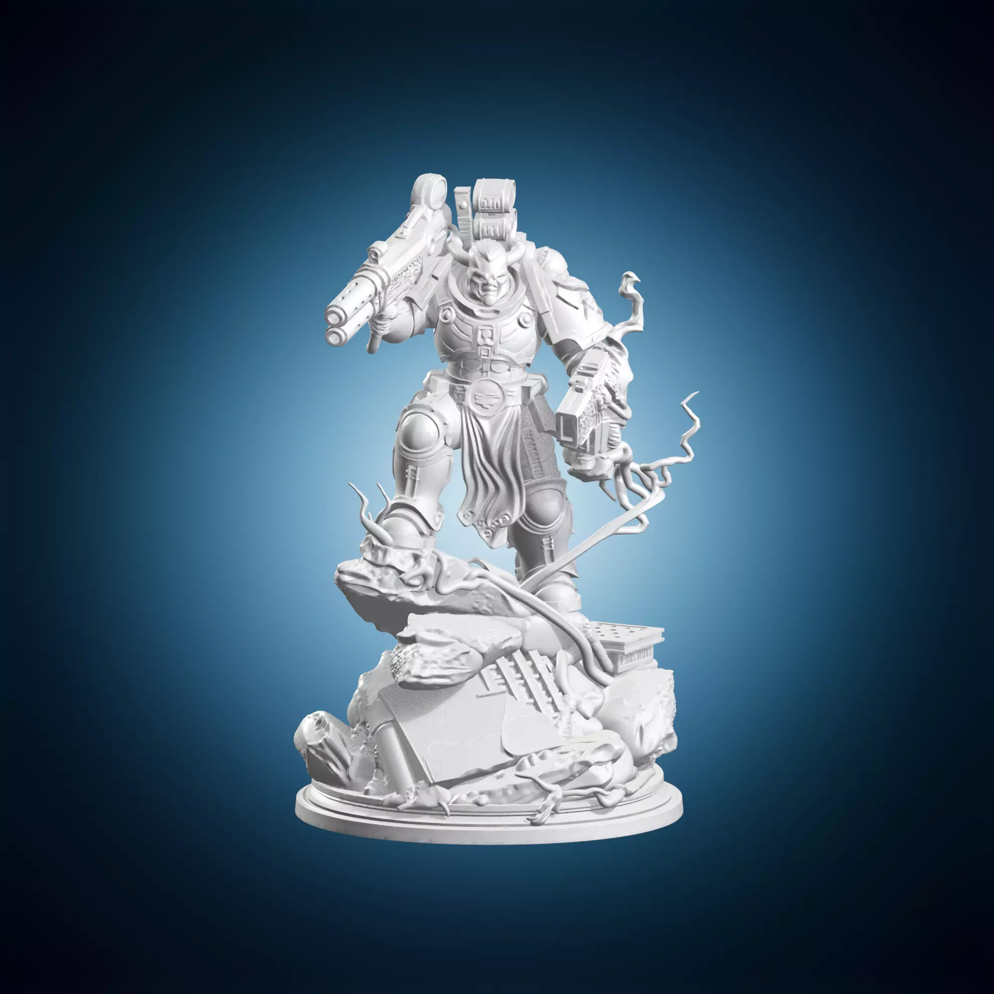 A detailed 3D model of a space marine character from a science fiction universe, armed with a heavy bolter weapon. The model features intricate details and textures, making it suitable for use in video games, movies, or other visual media. It is ideal for artists, designers, and enthusiasts who want to bring this iconic character to life.