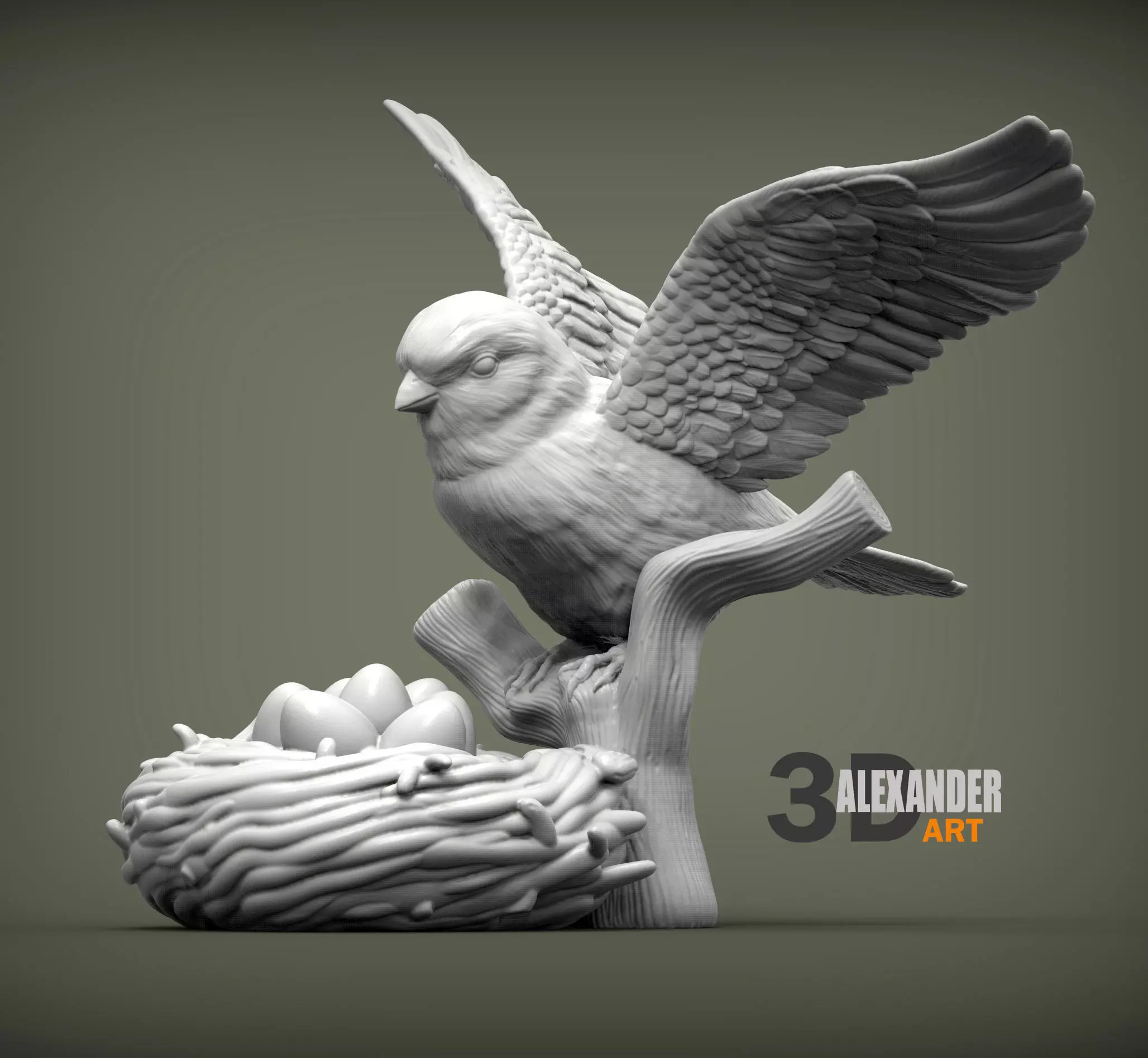 Sculpture sparrow with nest for 3D printing. The stl file is verified by netfabb. Model height 100 mm. The size can be easily changed in any printing program. If you love animals, you can use this model to decorate your interior or garden. Sale of electronic files of this model is strictly prohibited. subscribe to my patreon.