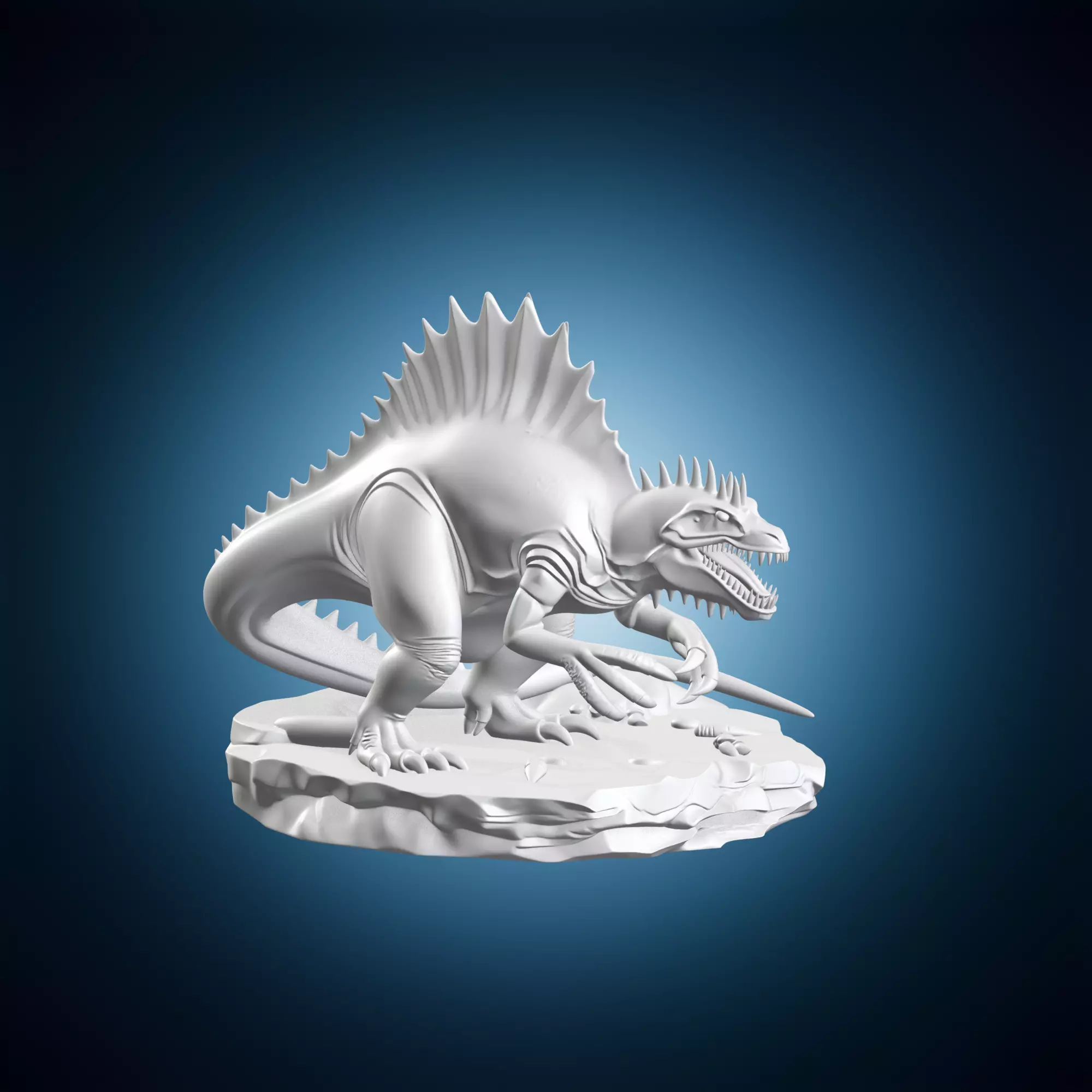 A miniature sculpture of Spinosaurus, a prehistoric carnivorous dinosaur from the Cretaceous period. This three-dimensional model is an artistic representation and not to scale. It can be used for educational purposes or as a decorative piece in a home or office. The sculpture features intricate details and textures that make it visually appealing. It's made of durable materials and can withstand regular handling. Perfect for fans of paleontology, art, or collectors looking for unique miniature models.
