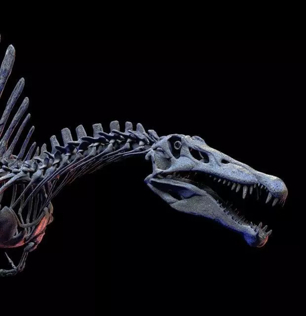 El tamaño del esqueleto de un aproximado de 80 cm de largo con una altura aproximada de 27 cm en la escala 1:20