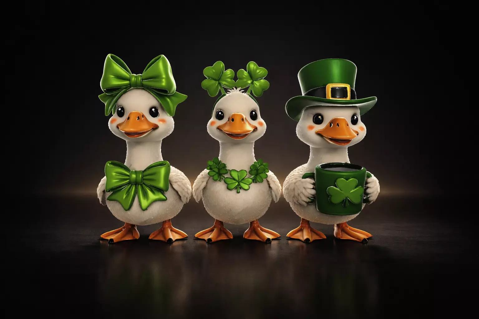 Celebrate the spirit of St. Patrick’s Day with this adorable Lucky Duck Trio, specially designed for 3D printing enthusiasts and holiday decorators. This charming set features three cheerful ducks dressed in festive Irish style: one with a shiny green bow, one crowned with lucky shamrocks, and one wearing a classic leprechaun hat while holding a clover mug. Their bright eyes, cute expressions, and vibrant green accents bring joy, luck, and a touch of whimsy to any space.