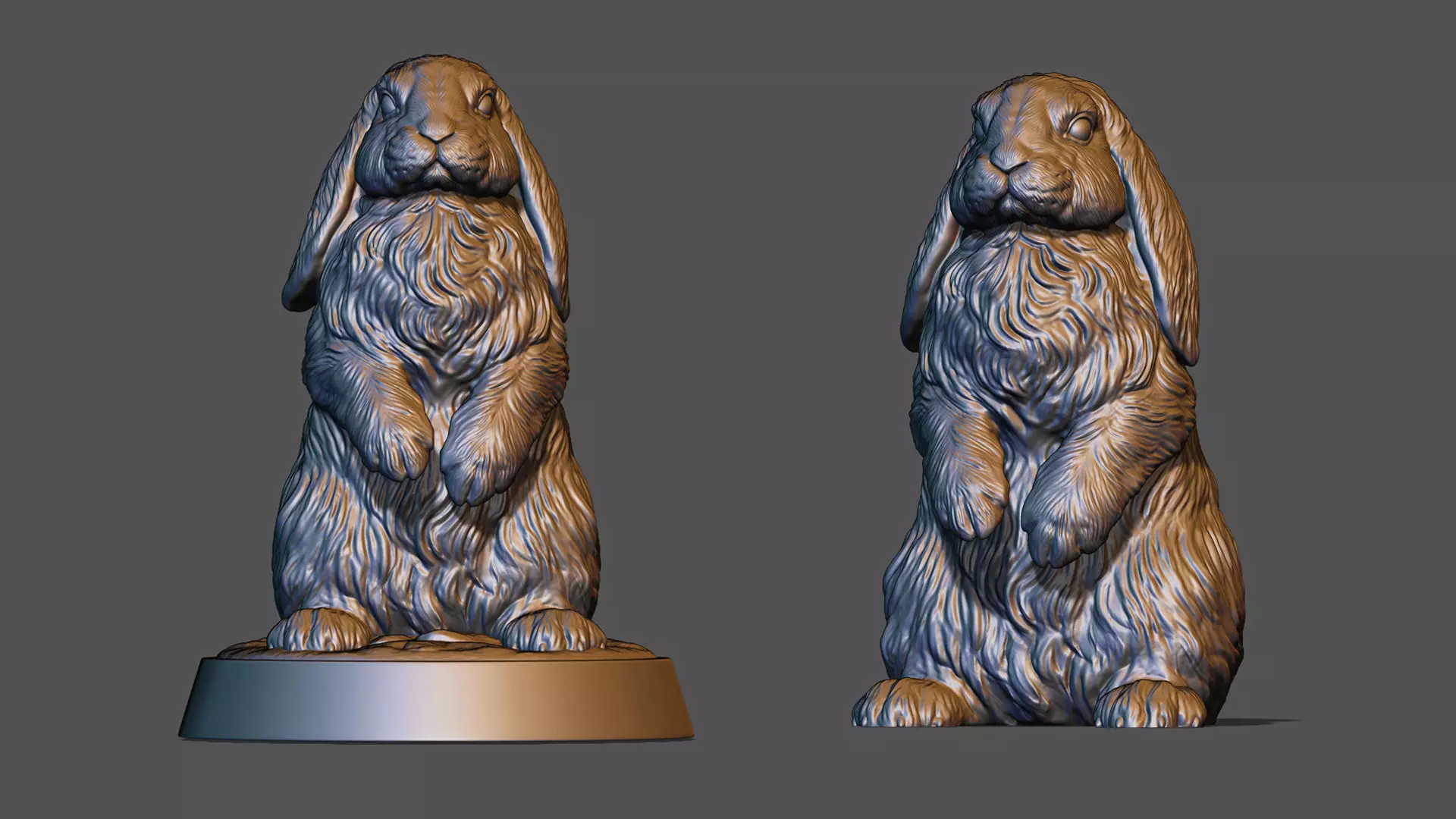 500K STL, OBJ triangulated mesh, Standing Lop Rabbit on the base merged